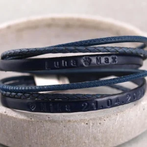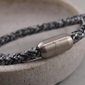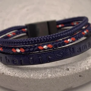 Armband aus Leder und Segeltau mit Gravur