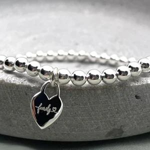 Armband aus Silberkugeln, Herzanhänger wählbar