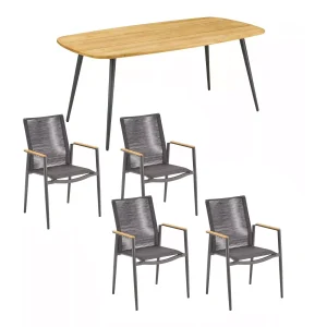 Gartenmöbel-Set 5-teilig mit CASA DOMA Gartentisch Napola Teak und Liadomo Stapelstuhl Mannoli Rope