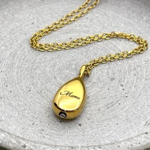 Asche Anhänger Gold mit Gravur, Träne, Tropfen