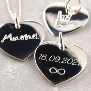 Großer Herz Gravur Anhänger aus Silber, 19 mm