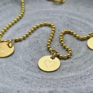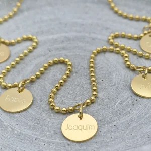 Familienkette Gold, fünf Gravur Anhänger, Kugelkette