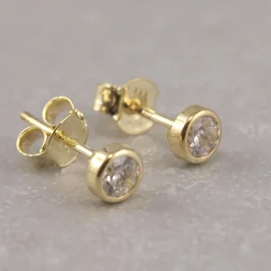 Echt goldene Ohrringe mit Zirkon, 4 mm