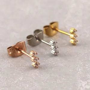 Kleiner Chirurgenstahl Ohrstecker 3 Kristalle