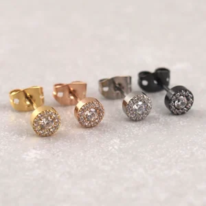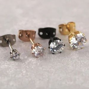 Titan Ohrringe Kronenfassung, Glitzer Ohrstecker