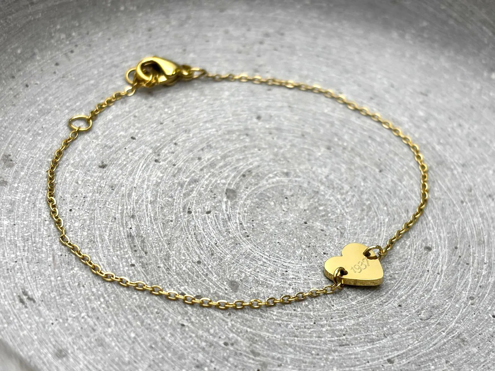 Dieses filigrane Armband aus Chirurgenstahl wird in unserer Manufaktur für Sie mit Ihrem Wunschtext graviert. Es ist in den Farben Silber und Gold erhältlich und hat eine Länge von 15 cm, welche um weitere 3 cm verlängert werden kann. Dieses Armband mit Gravur-Herz ist größenverstellbar. Es ist das perfekte Geschenk für die beste Freundin, die Mutter oder Oma!
