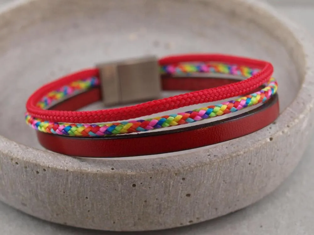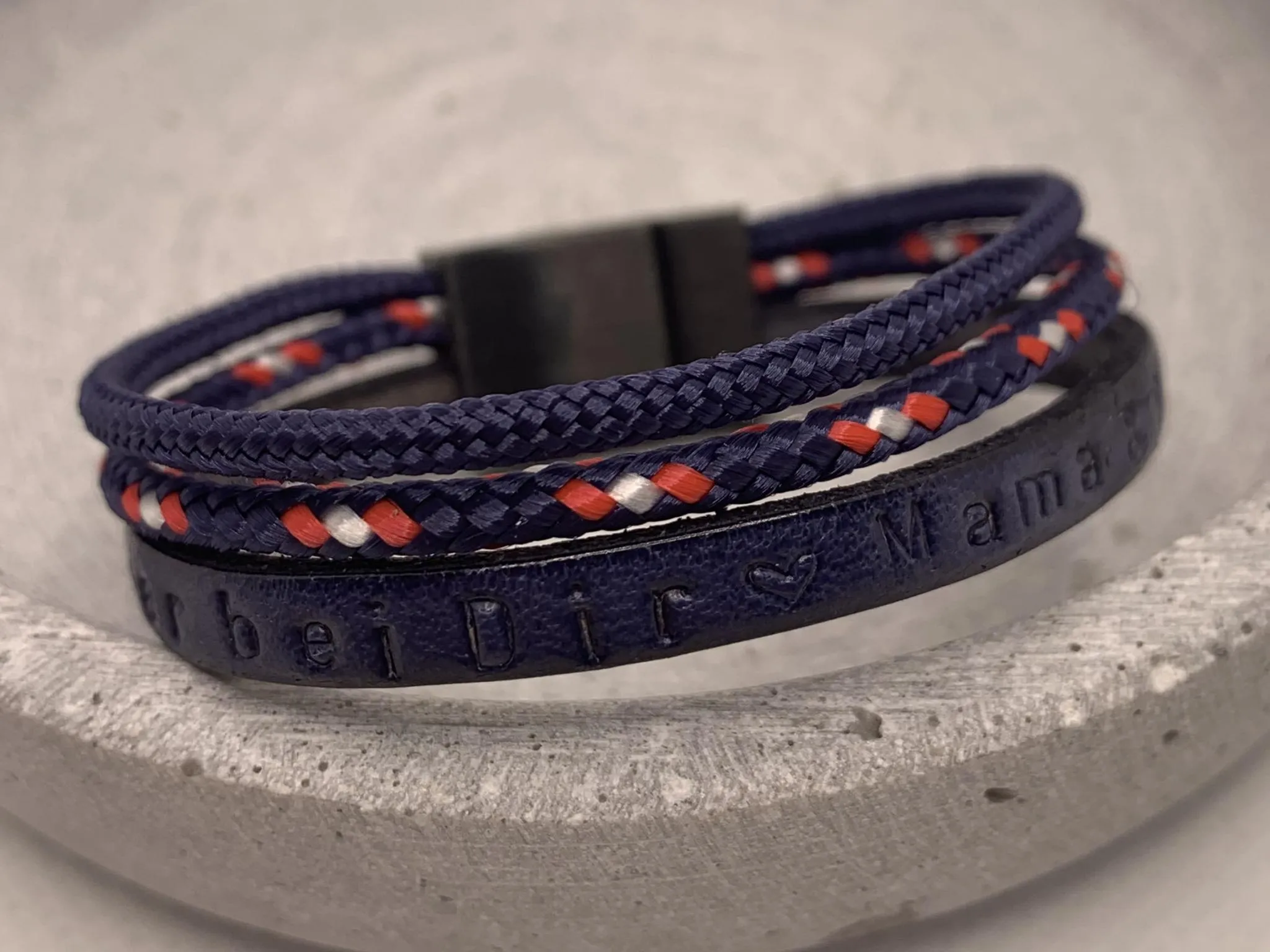 - Personalisierbares Armband aus Segeltau und Leder