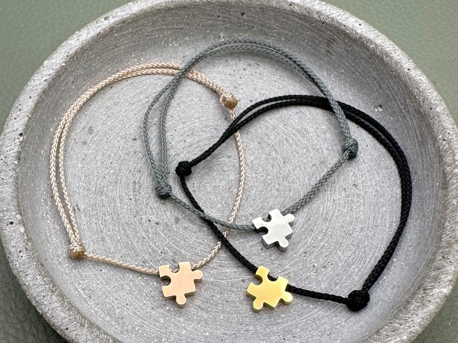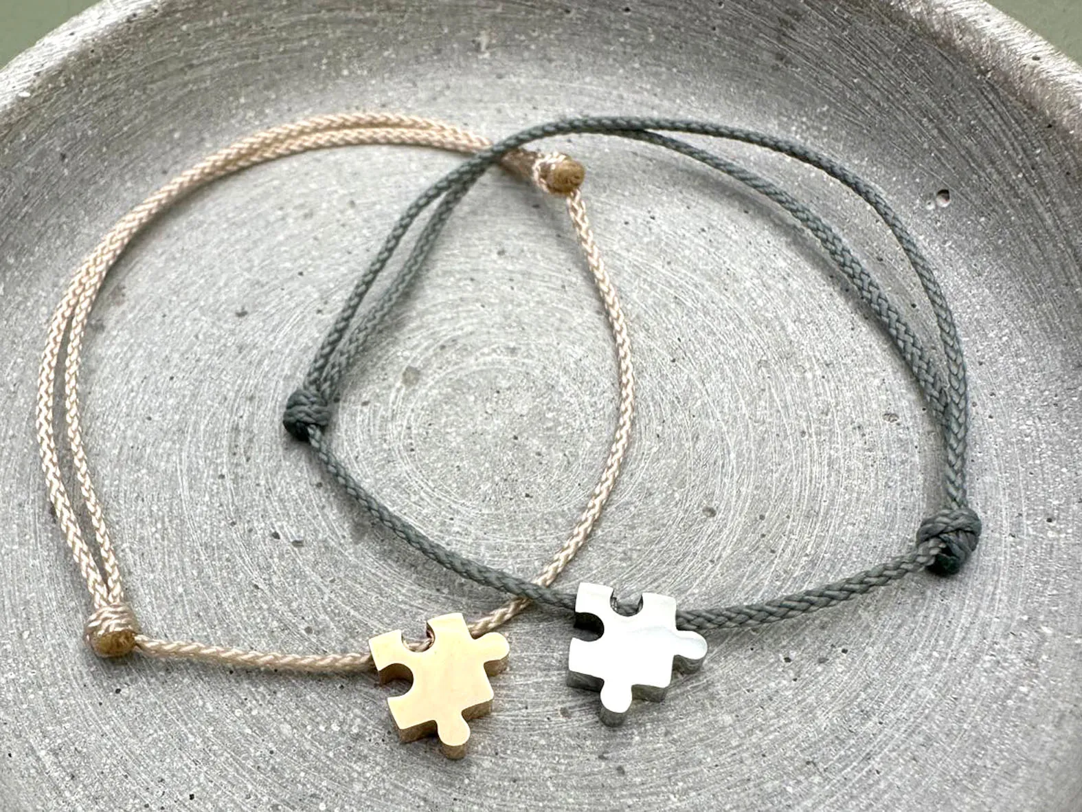 Armband mit Puzzle Perle, größenverstellbar mit Schiebeknoten