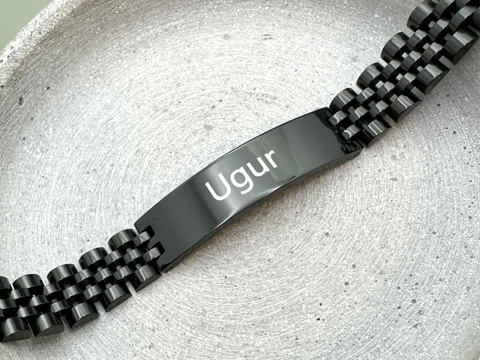 Dieses elegante Armband aus hochwertigem Edelstahl vereint Stil und Persönlichkeit. Wählen Sie eine individuelle Gravur für das ID-Schild – auf Wunsch auch in zwei Zeilen!