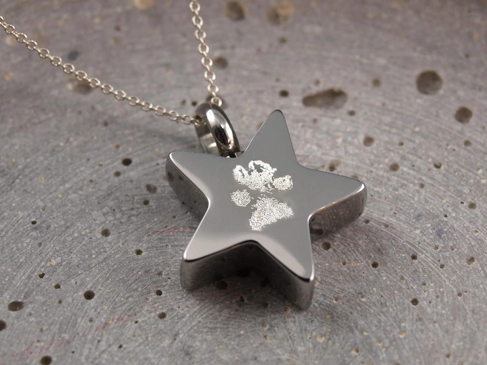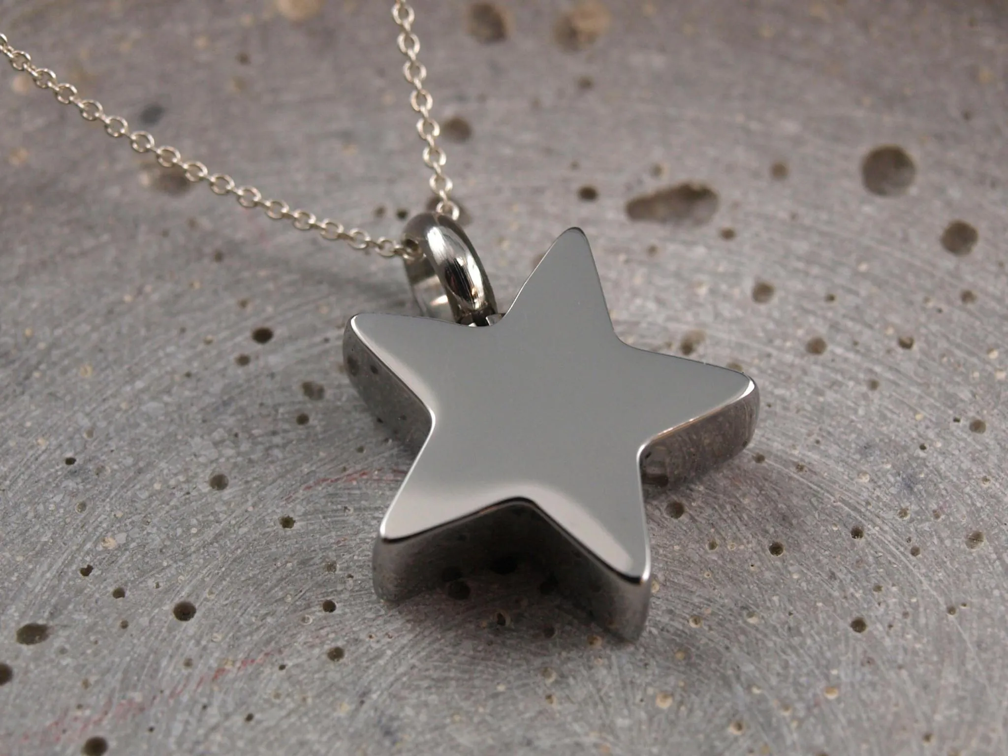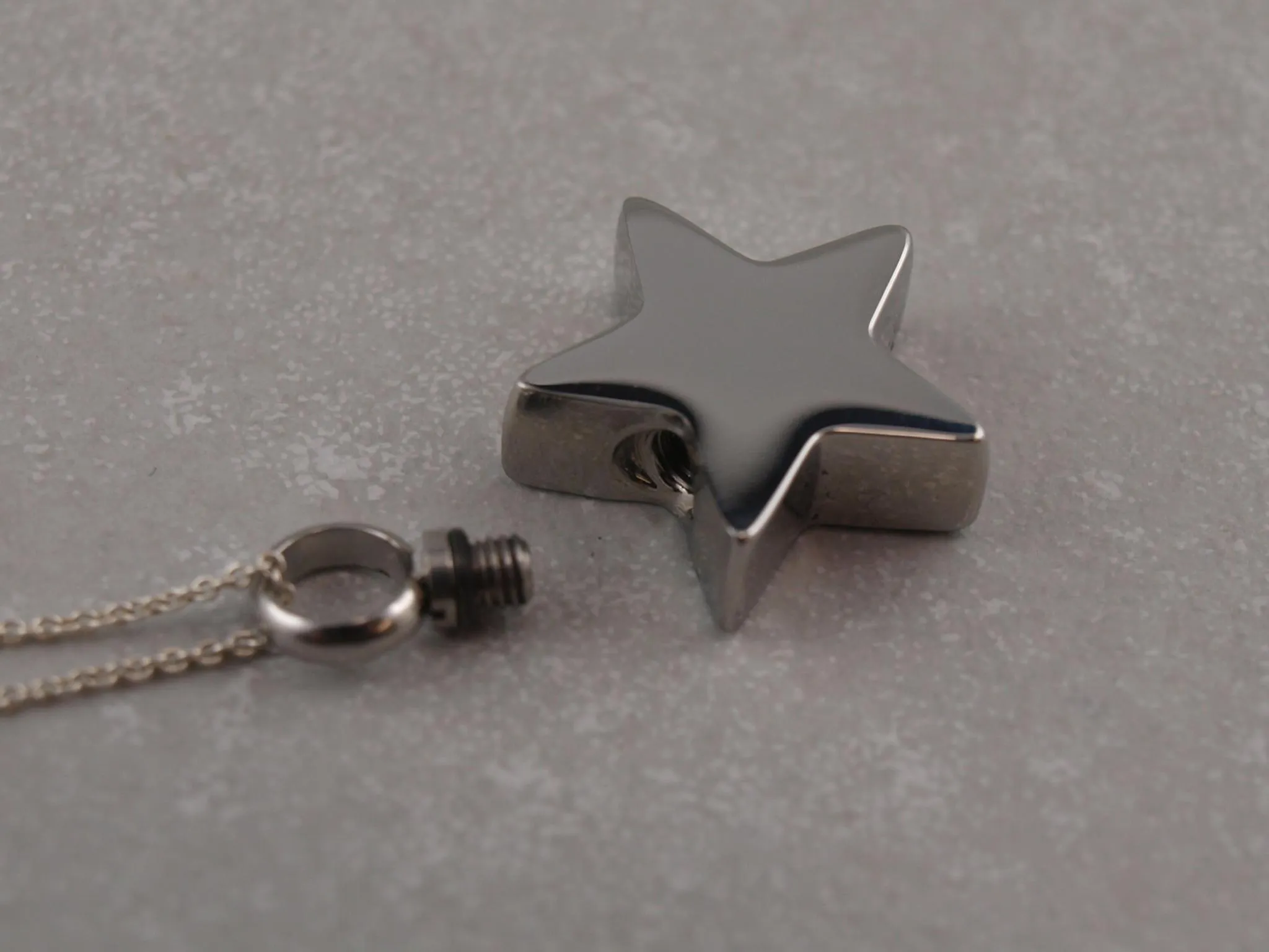 Erinnerungsschmuck mit Gravur, Stern Kapsel zur Aufbewahrung von Asche, Sand, Fell etc.