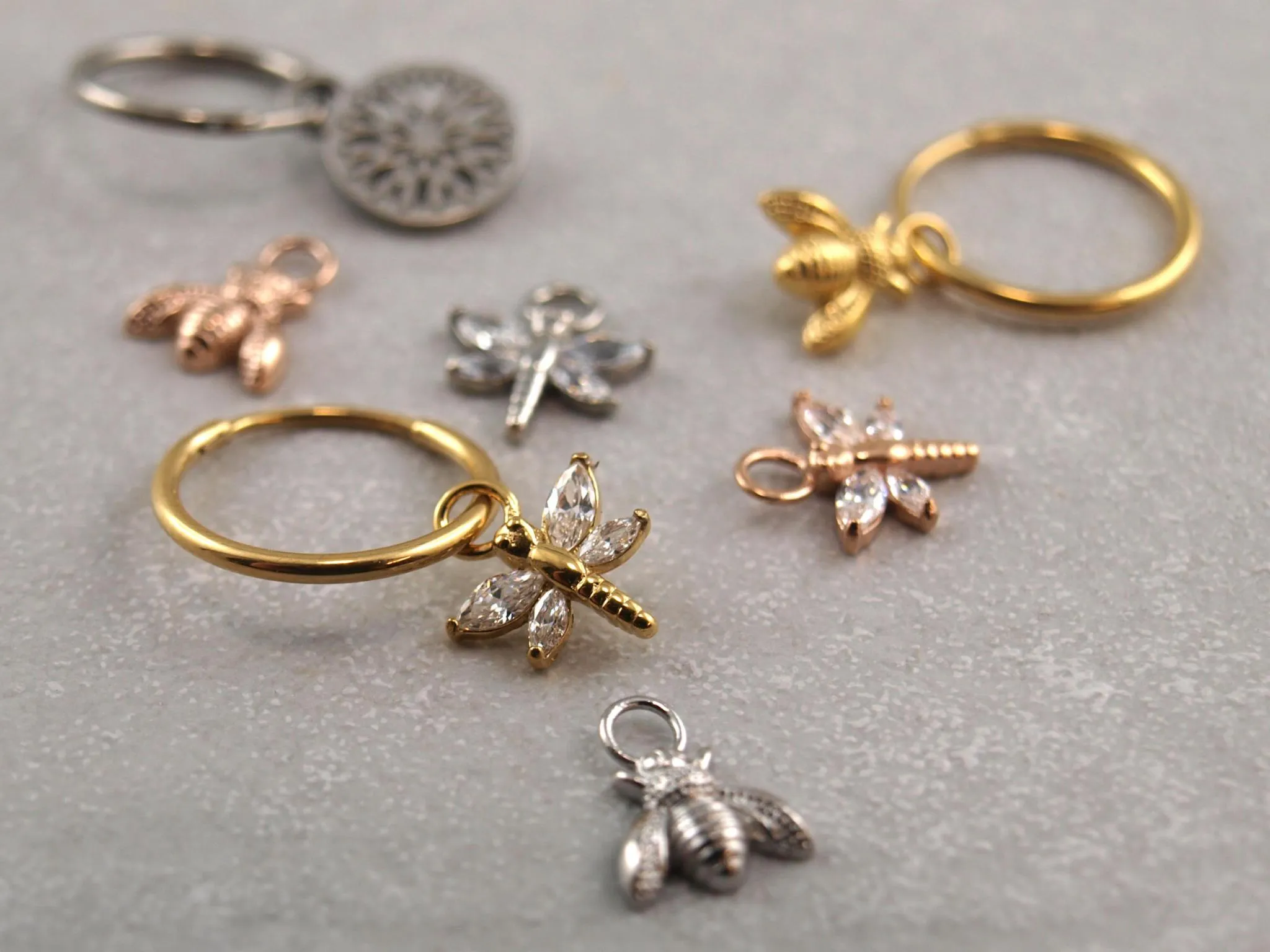 Creolen werden Dank dieser einzigartigen Anhänger zu einem besonderen und einzigartigen Schmuckstück! Dafür muss der Clicker lediglich geöffnet und das Schmuckstück angebracht werden. Es besteht aus hochwertigem Chirurgenstahl 316L, zu dessen Materialeigenschaften unter anderem ebene Beschaffenheit und hohe Beständigkeit zählen. So wird dieser entzückende Anhänger in Form eines Bienchens zu einer hervorragenden Ergänzung für jeden entsprechenden Clicker!