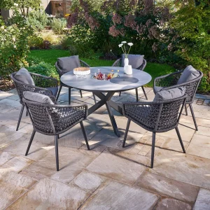Im Lieferumfang enthalten sind zwei Sitzkissen und zwei Rückenkissen. Die Kissen sind mit Agora®-Bezügen (100% Polyacryl) von Tuvatextil® ausgestattet, die sich als äußerst widerstandsfähig und pflegeleicht erweisen. Der Stoff ist im Spinndüsenverfahren gefärbt, wodurch er eine hohe UV-Beständigkeit aufweist, da die Farbe in die Fasern eingearbeitet ist. Zusätzlich ist der Stoff UV-beständig und verfügt über eine wasser- und schmutzabweisende Beschichtung. Er ist auch besonders resistent gegen Schimmelbildung. Die Kissen sind im Inneren mit einer wasserundurchlässigen Beschichtung und versiegelten Nähten ausgestattet, um Feuchtigkeit abzuhalten. Bei Bedarf können die Bezüge leicht abgenommen und gewaschen werden. Die Kissen bestehen aus Schaumstoff und Vlies und verfügen über rutschfeste Einlage, die für eine optimale Positionierung sorgt.