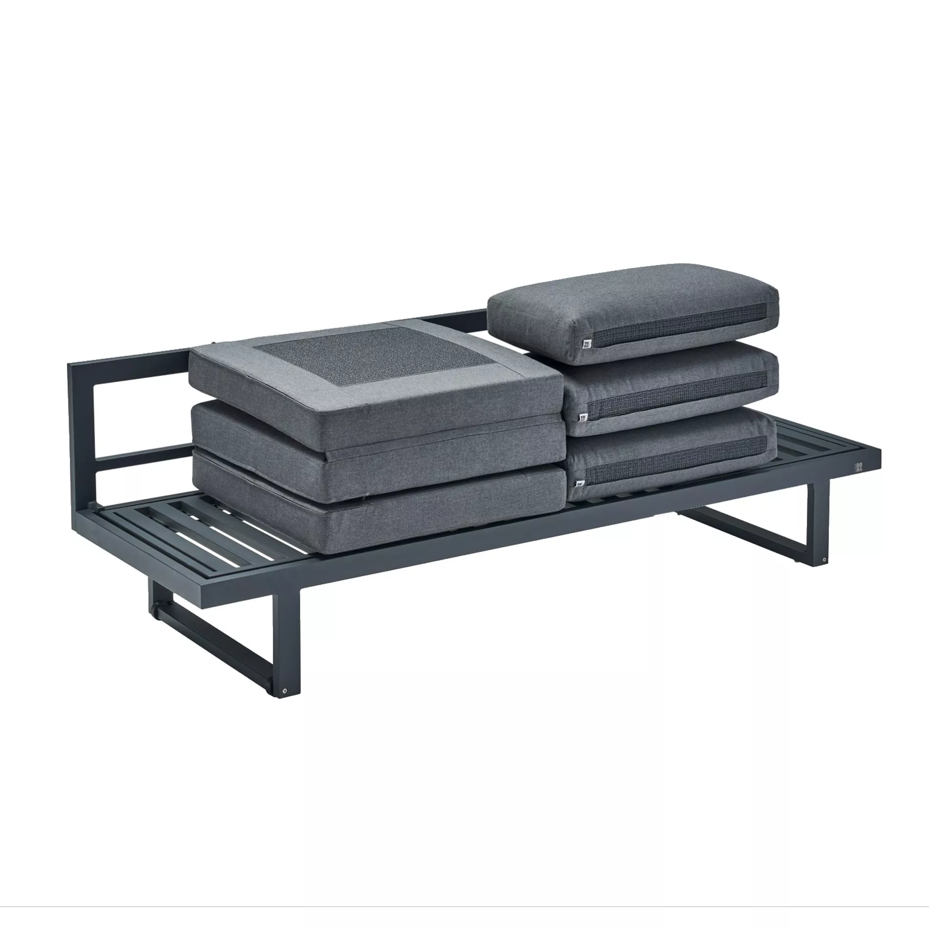 Das Gestell und die Rückenlehne sind aus anthrazitfarbenem Aluminium gefertigt, was nicht nur ein modernes Erscheinungsbild verleiht, sondern auch eine hervorragende Wetterbeständigkeit gewährleistet. Die im Lieferumfang enthaltenen Sitz- und Rückenkissen, aus wasserundurchlässigem Tuvatextil®, vollenden das Design und bieten einen optimalen Sitzkomfort.