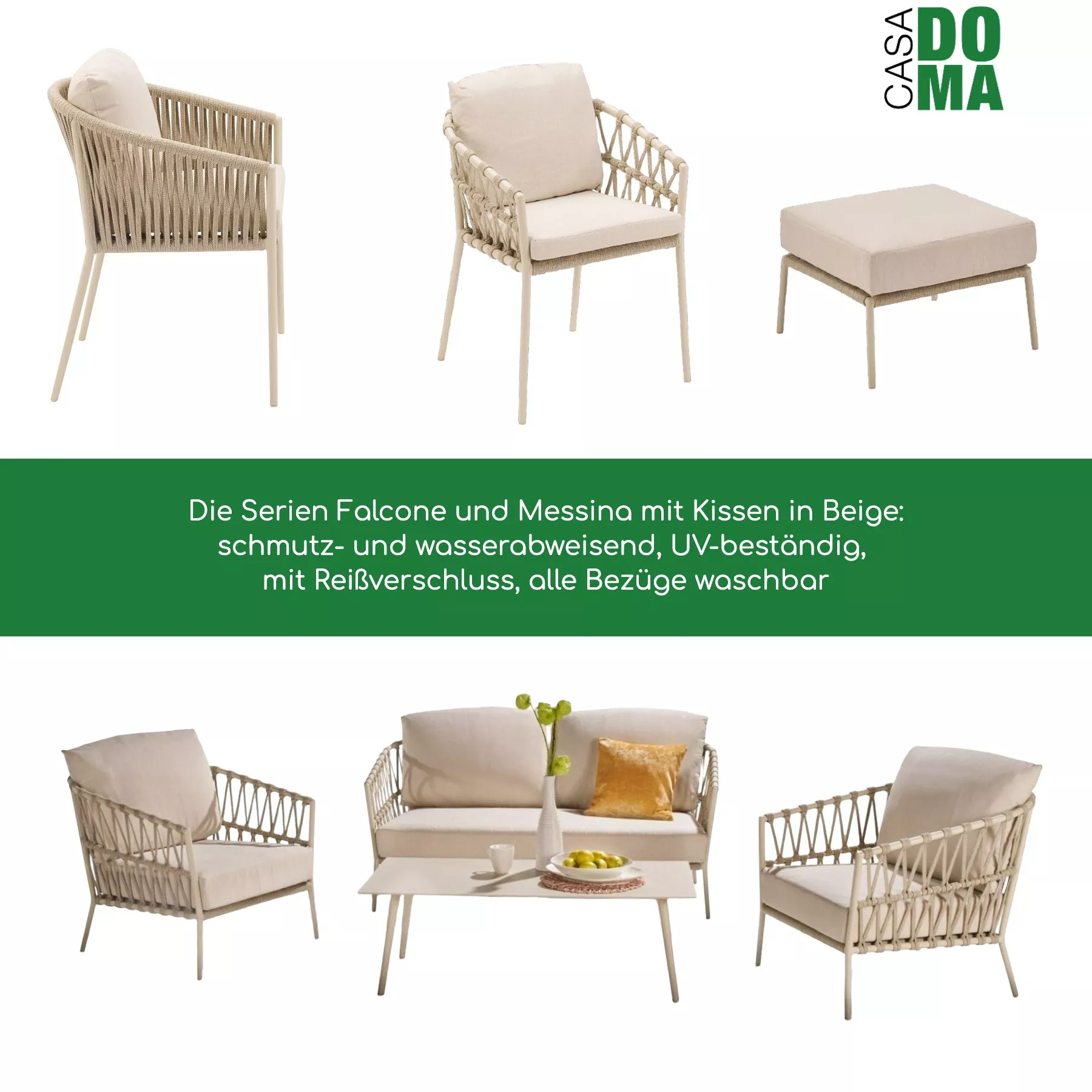 Der Gartenstuhl “Messina” lässt sich hervorragend mit weiteren Gartenmöbeln aus der Serie CASA DOMA kombinieren. Entdecken Sie passende Tische und Accessoires, um Ihre Outdoor-Oase zu vervollständigen. Nutzen Sie dazu die unten verlinkten Produkte für eine harmonische Gestaltung.