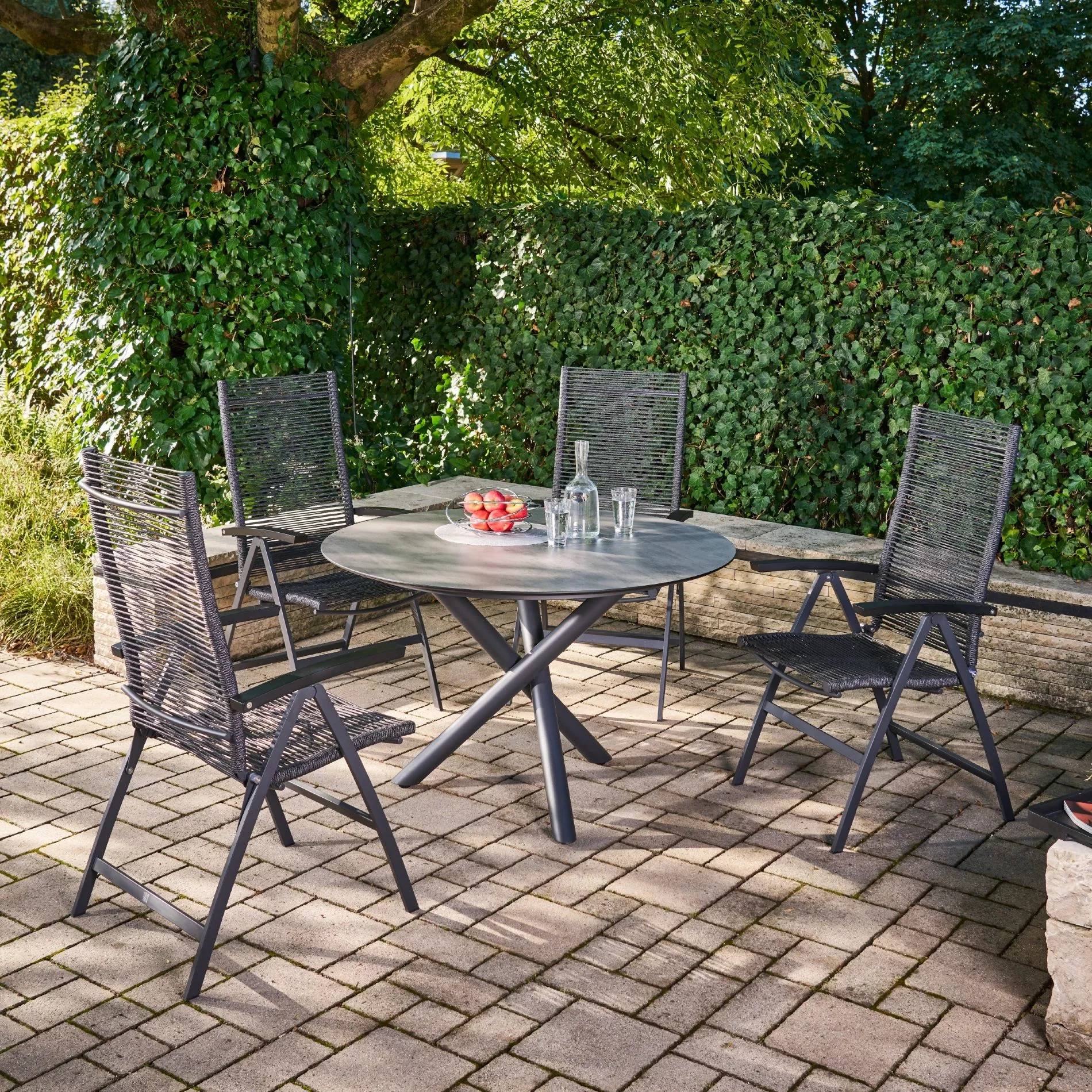 Der perfekte Gartentisch für alle, die Stil und Qualität schätzen! Der runde Gartentisch “Perano” von CASA DOMA verfügt über ein Edelstahl-Gestell in elegantem Anthrazit, das perfekt mit den feinen Farbnuancen der HPL-Platte harmoniert. Die robuste Tischplatte und das stabile Gestell sind speziell für den Einsatz im Freien konzipiert und sehr widerstandsfähig gegen Witterungseinflüsse. Das minimalistische Design sorgt für ein stilvolles Ambiente. Das Kreuzgestell bietet genügend Beinfreiheit, so dass hier vier Personen bequem Platz finden und das Draußensein genießen können.