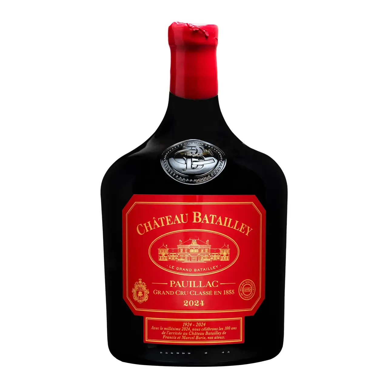 [vc_row][vc_column][vc_column_text css=””]Mit dem Château Batailley 5eme Cru 2024 »Marie-Jeanne« feiert das renommierte Weingut aus Pauillac den 100. Jahrestag der Ankunft der Familie Borie-Castéja – gekrönt in einer 2,25 Liter fassenden Sonderedition. Die Assemblage des kräftigen Rotweins setzt sich aus den Rebsorten Cabernet Sauvignon (81 %), Merlot (15 %) und Petit Verdot (4 %) zusammen.