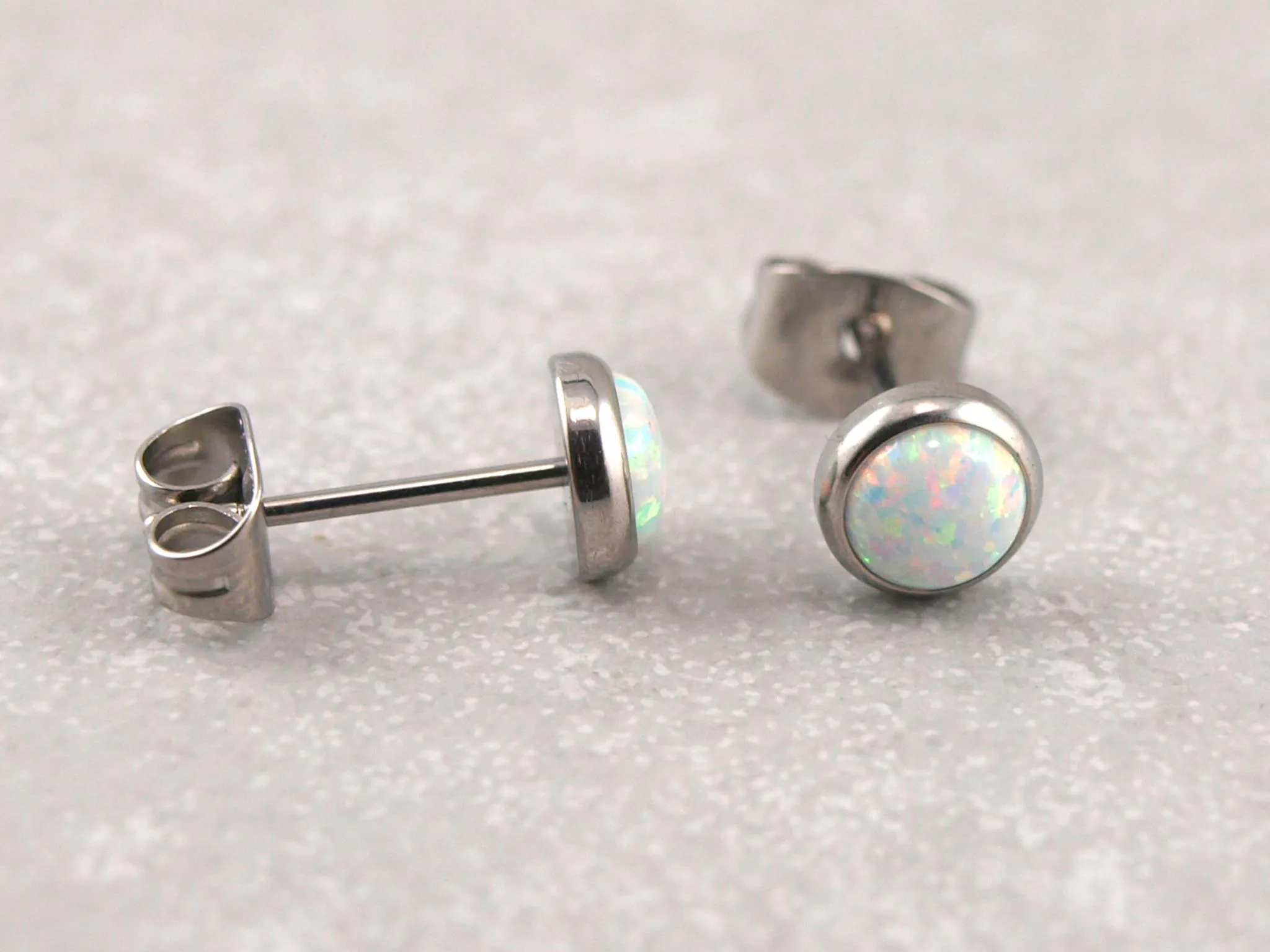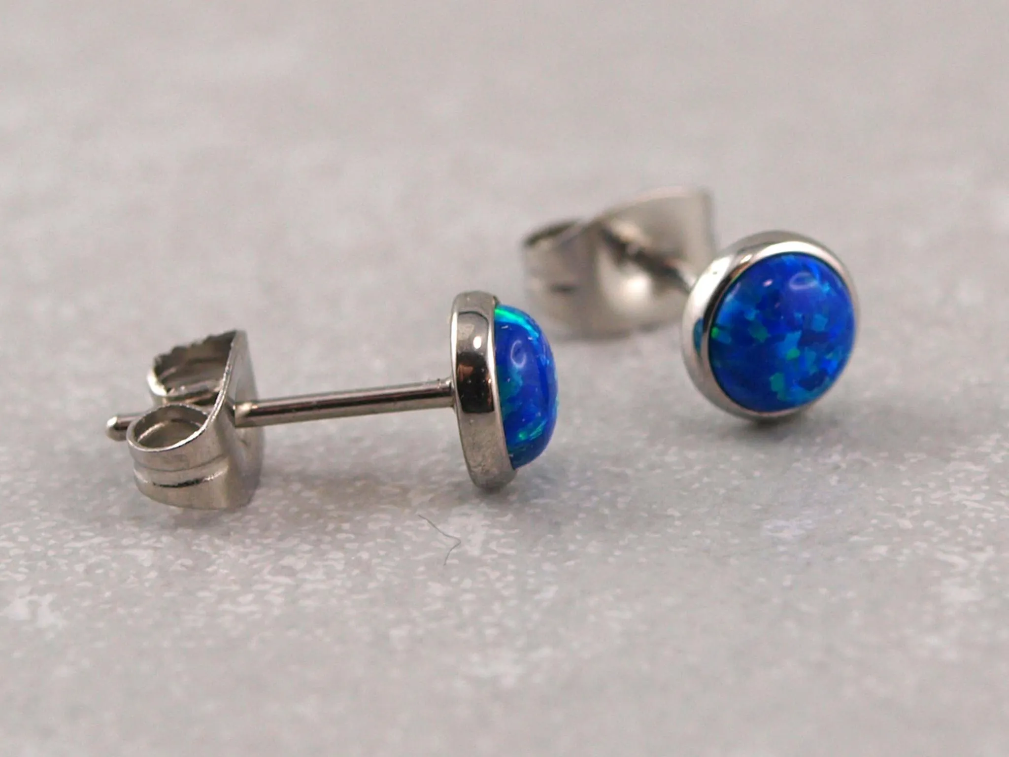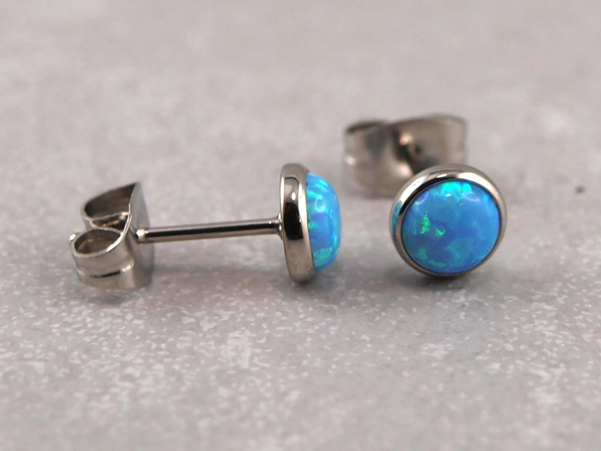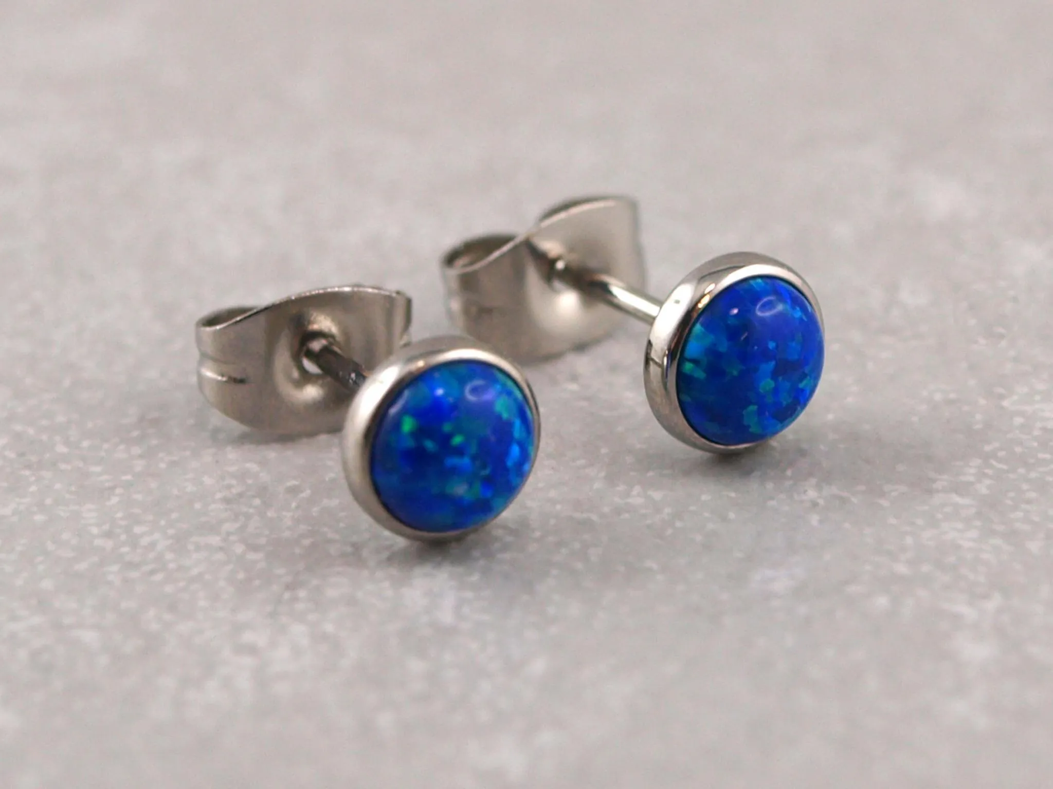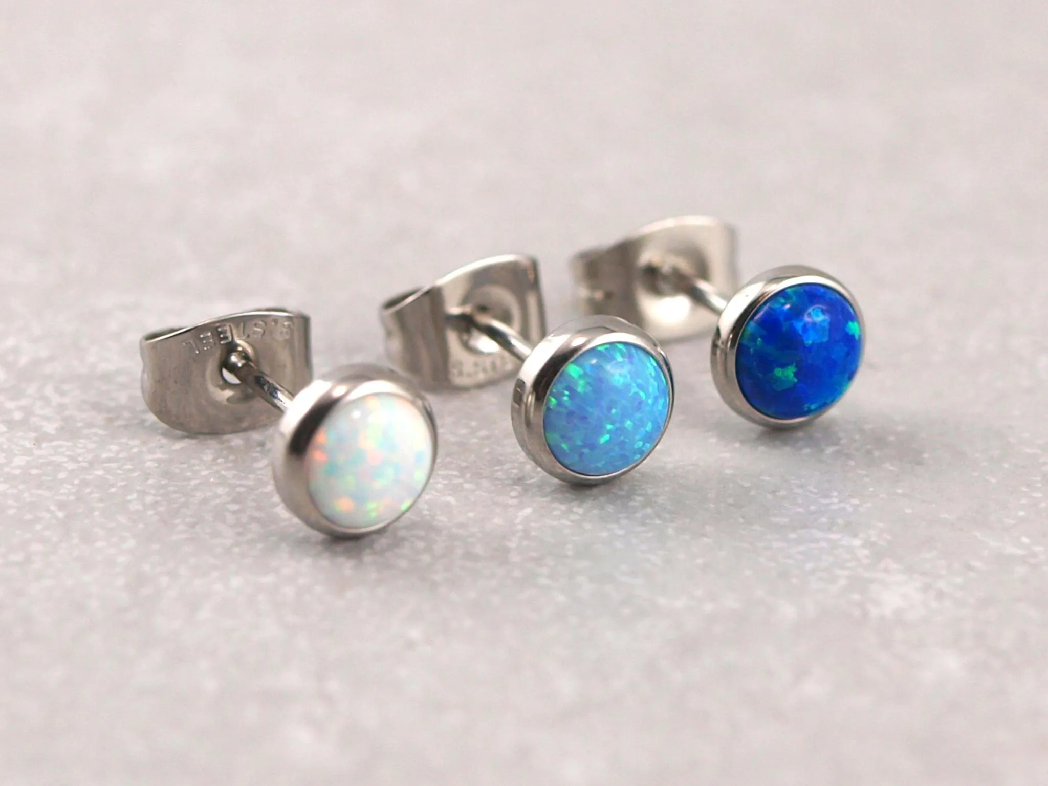 Hypoallergene Ohrstecker für Allergiker geeignet mit synthetischem Opal, Folgeohrring