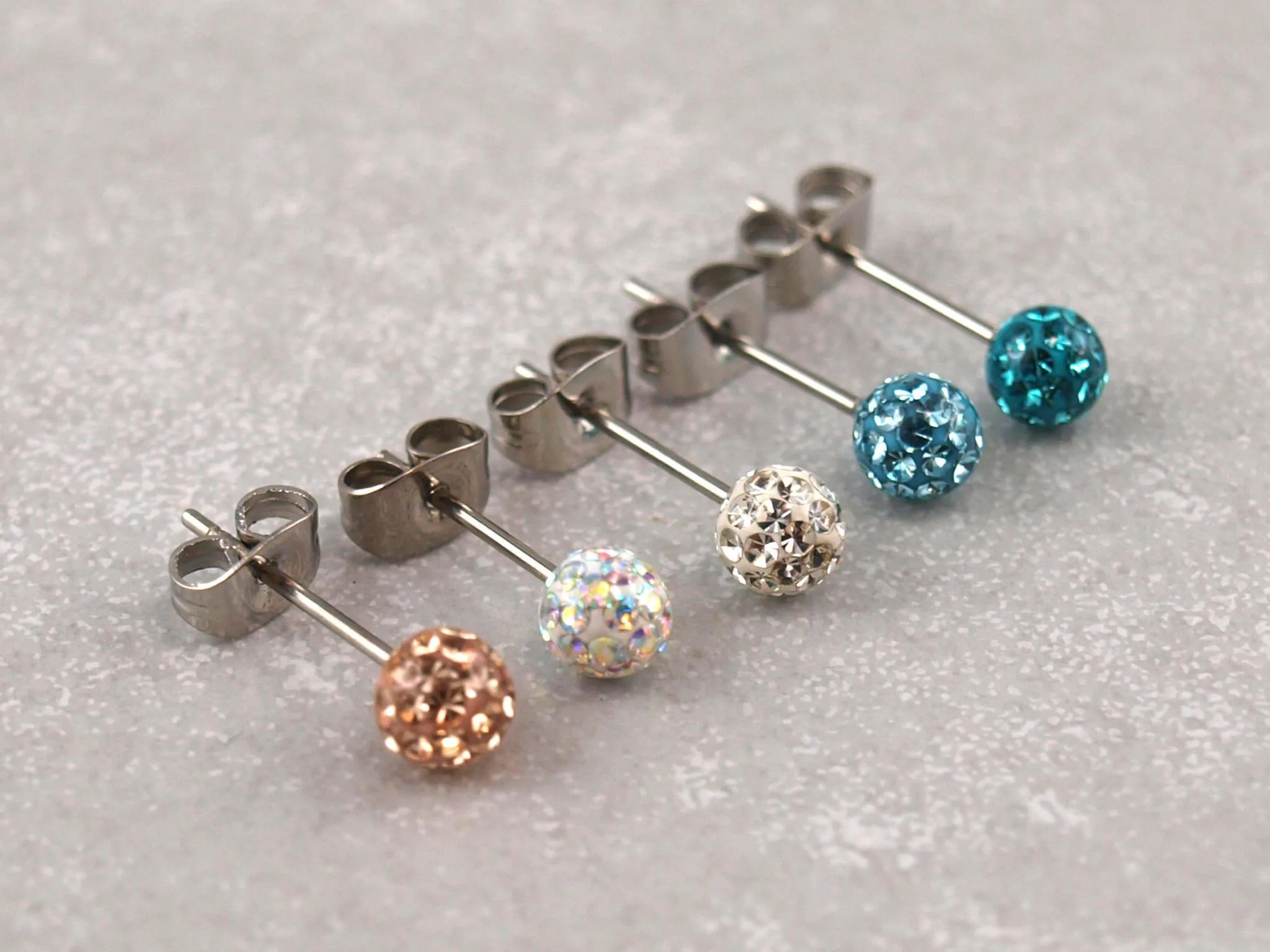 Diese hautverträglichen, hypoallergenen Kugel-Ohrstecker aus Chirurgenstahl gibt es in verschiedenen Farben. Die antiallergische Ohrring-Kollektion für tägliches, unbeschwertes Tragevergnügen auch bei empfindlicher Haut. Die Glitzersteine sind mit Epoxyharz umhüllt und somit wunderschön glatt. Wählen Sie Ihre Lieblingsfarbe und bringen Sie Ihre Ohren zum Funkeln!