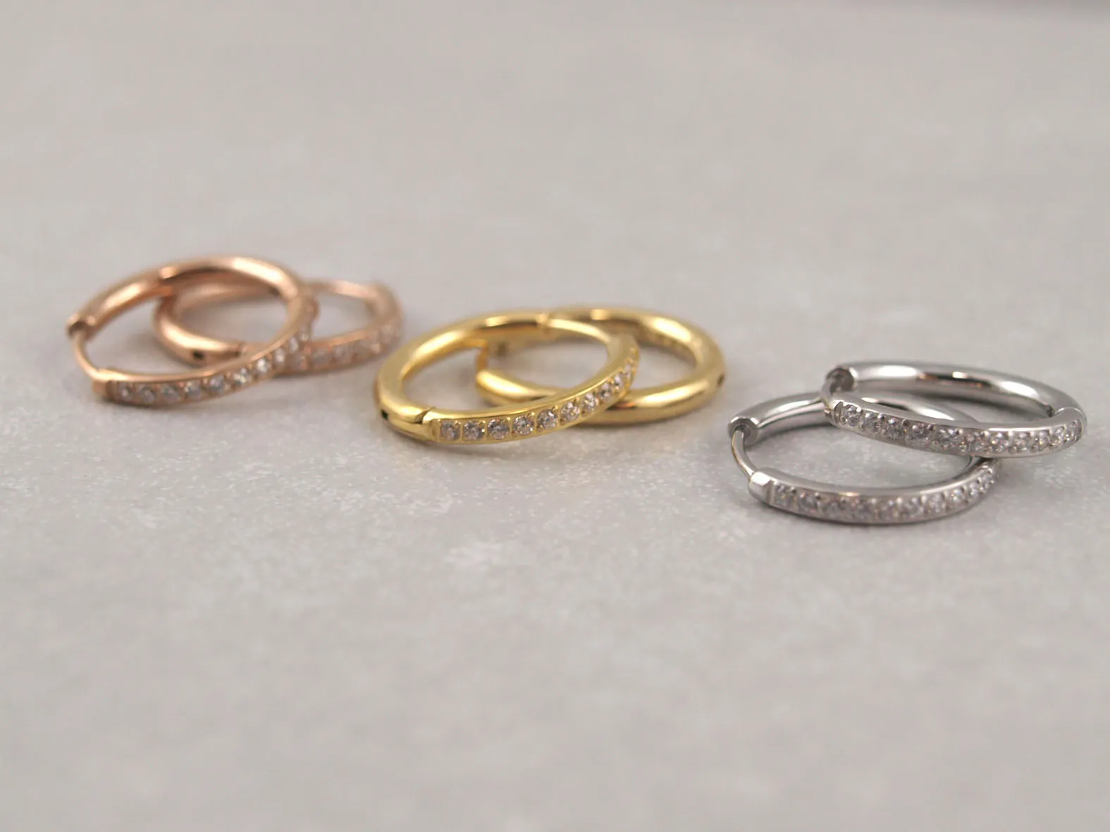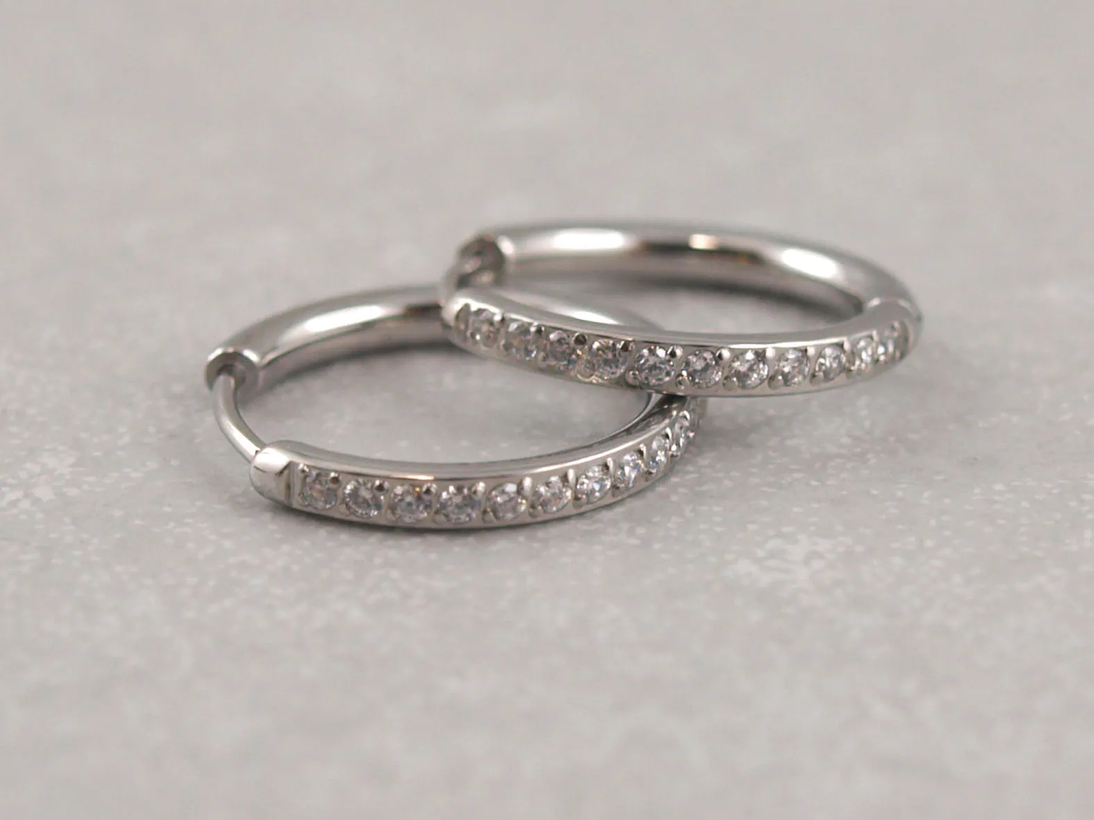 Zeitlose Creolen aus Chirurgenstahl mit Kristallen, Allergiker geeignet, hypoallergen