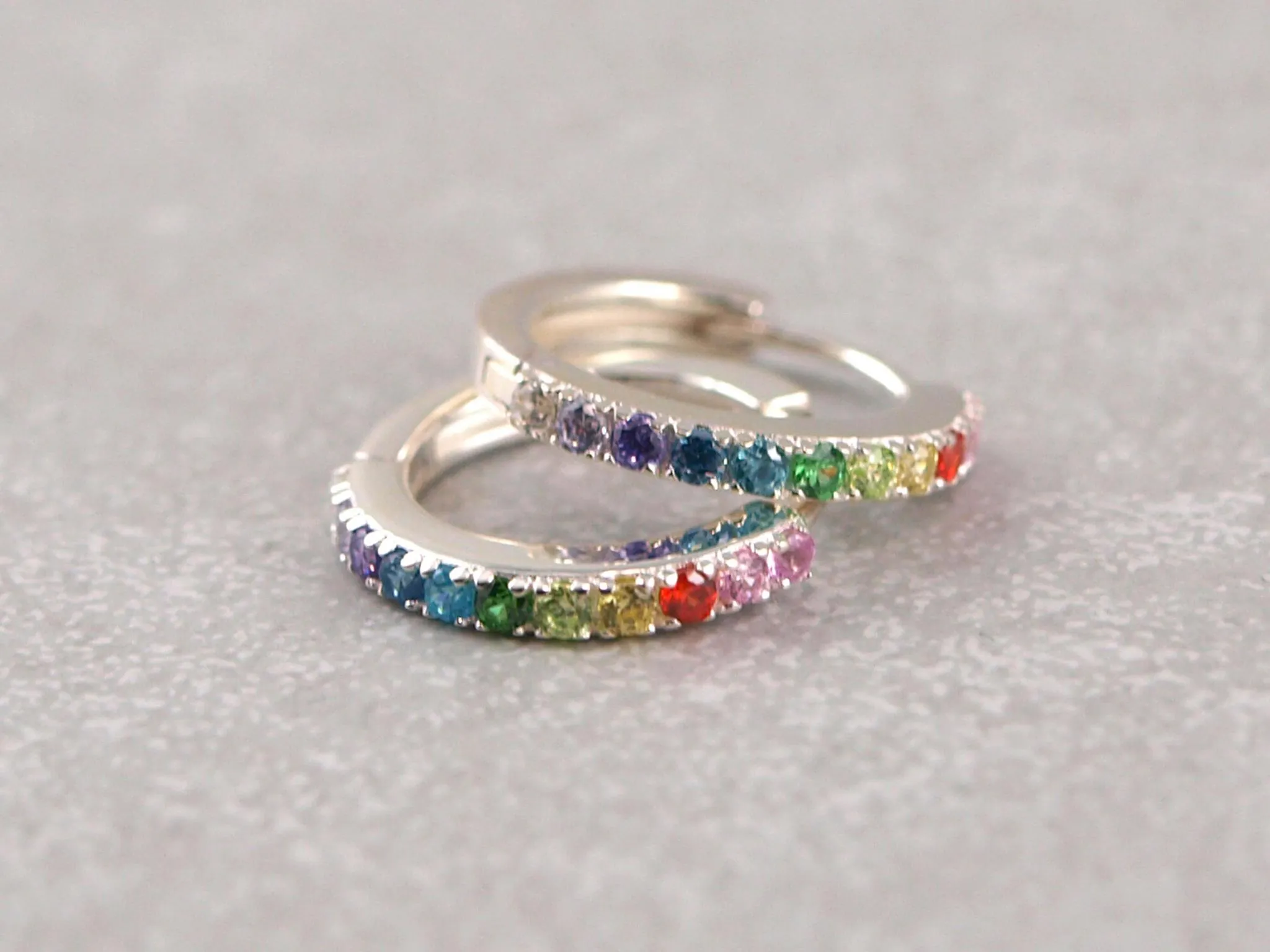 Klapp-Kreolen aus 925er Silber mit funkelnden Zirkonia Steinen, Regenbogen