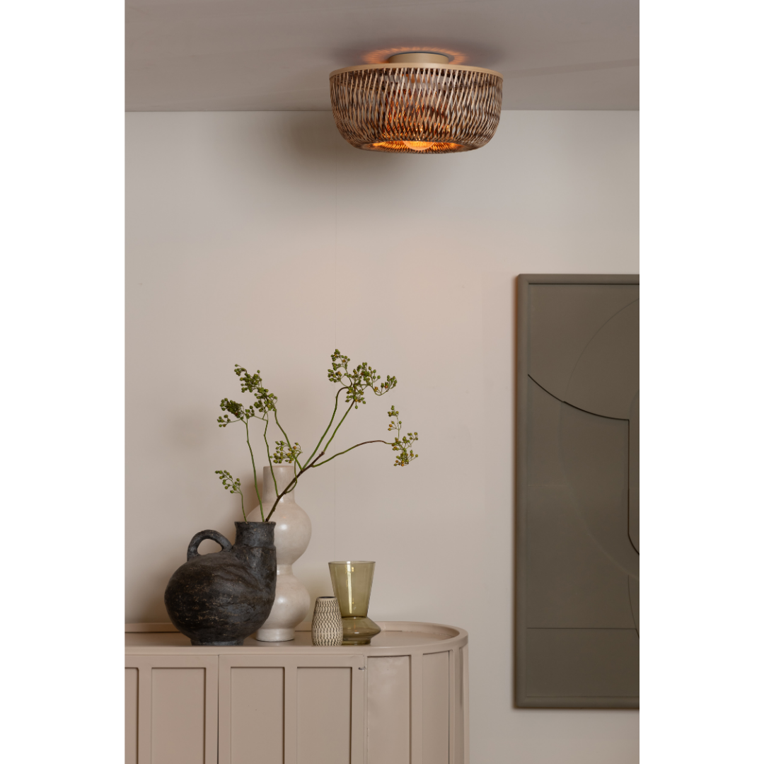 Hol Dir ein Stück Natur nach Hause mit der Deckenlampe Barbados von GOOD&MOJO. Der handgeflochtene Lampenschirm aus Bambus in natürlichen Braun- und Beigetönen bringt sofort eine warme, gemütliche Atmosphäre in Deine Räume – perfekt fürs Wohnzimmer, Schlafzimmer oder den Flur. Das halbrunde Design sorgt für eine angenehme, gleichmäßige Lichtverteilung – ideal zum Entspannen, Lesen oder einfach zum Wohlfühlen.