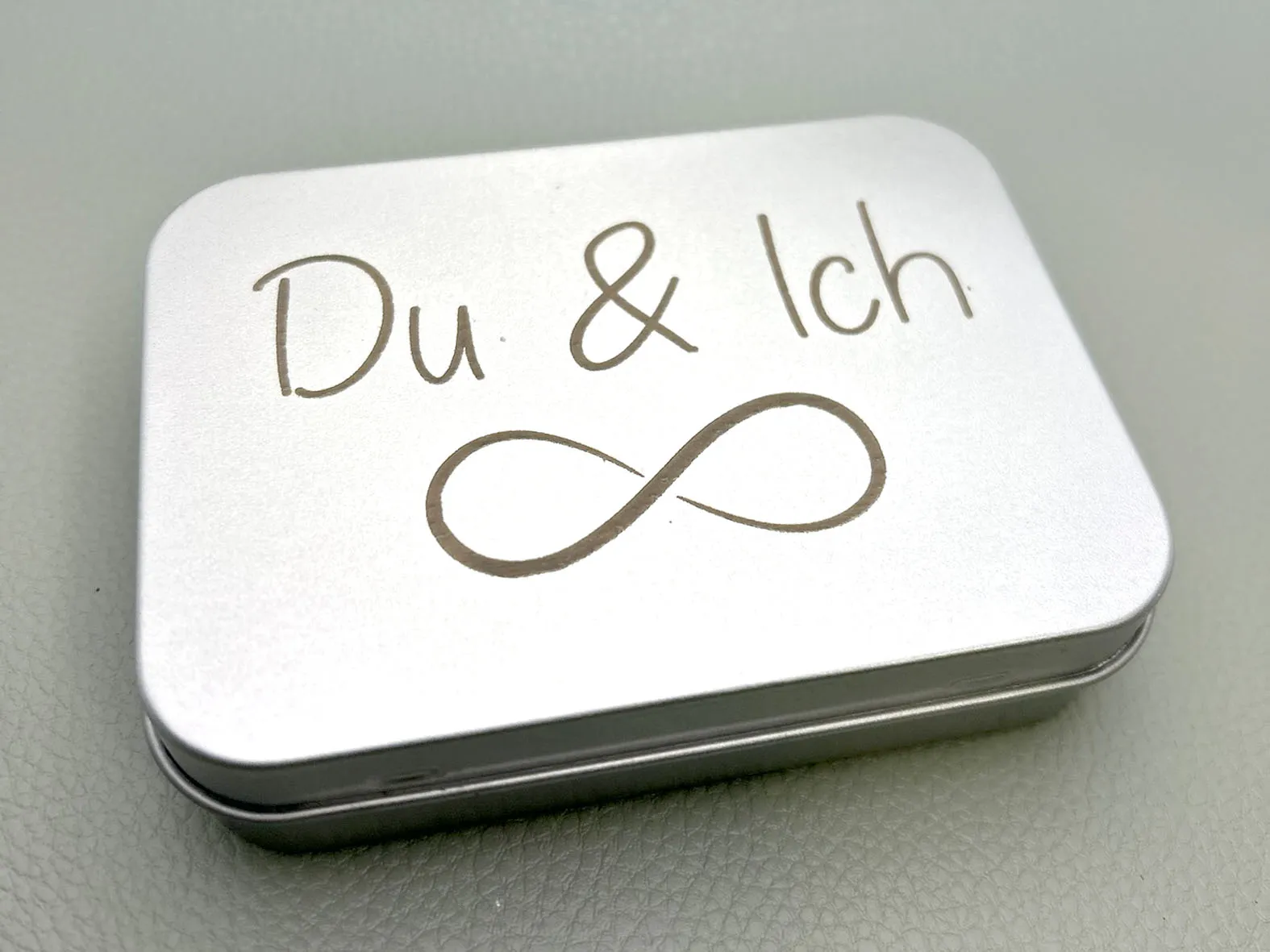 Silberne Geschenkdose mit Gravur “Du & Ich – Gravur”