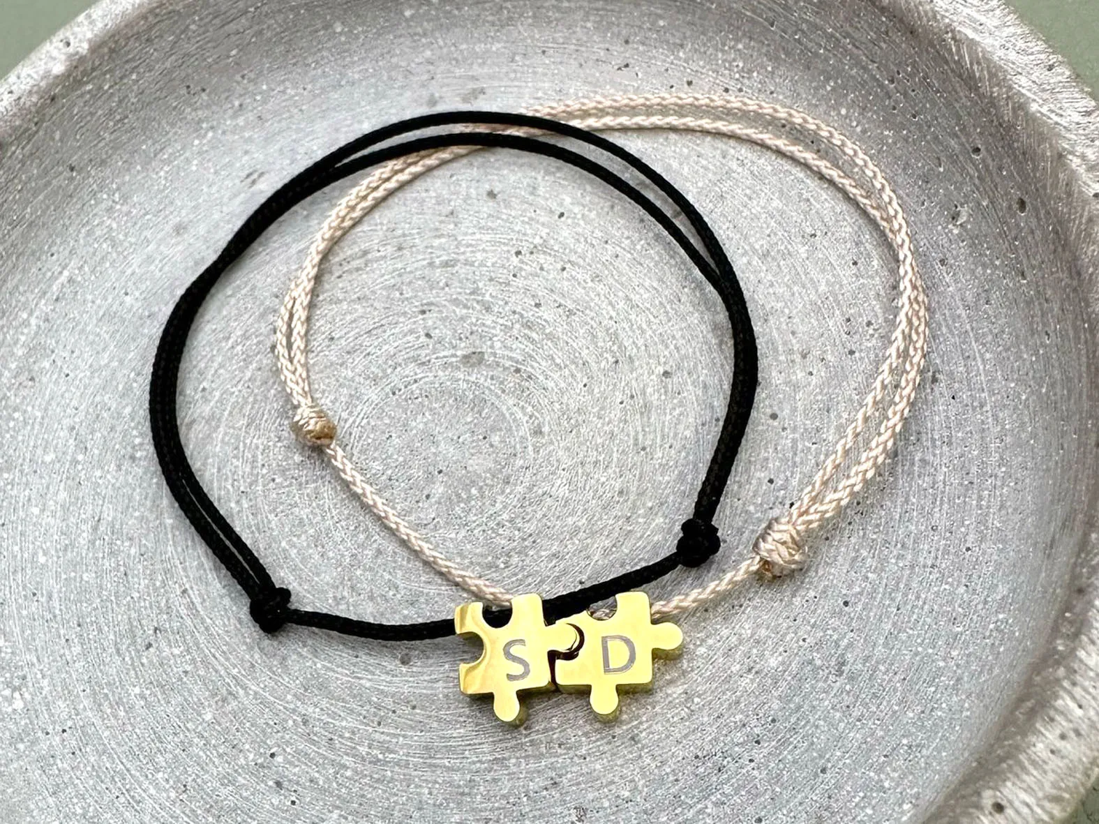Freundschaftsarmband, Partnerarmband mit Puzzle Perle, gravierbar