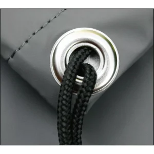 Die Schutzhülle ist bodenlang und wird mit Schnurzug und zusätzlichen Ösen im Saum zur sicheren Befestigung der Hülle geliefert.