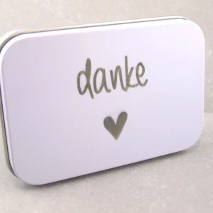 Diese silberne Geschenkdose aus Weißblech ist etwa 105 mm lang, 80 mm breit und 25 mm hoch. Verschenken Sie ihn ihr beispielsweise einen individuell gestalteten Schlüsselanhänger! Danach eignet sich die Dose perfekt für andere Dinge, beispielsweise zur Aufbewahrung von Kaugummis im Auto. Die Gravur auf der Dose ist inklusive.