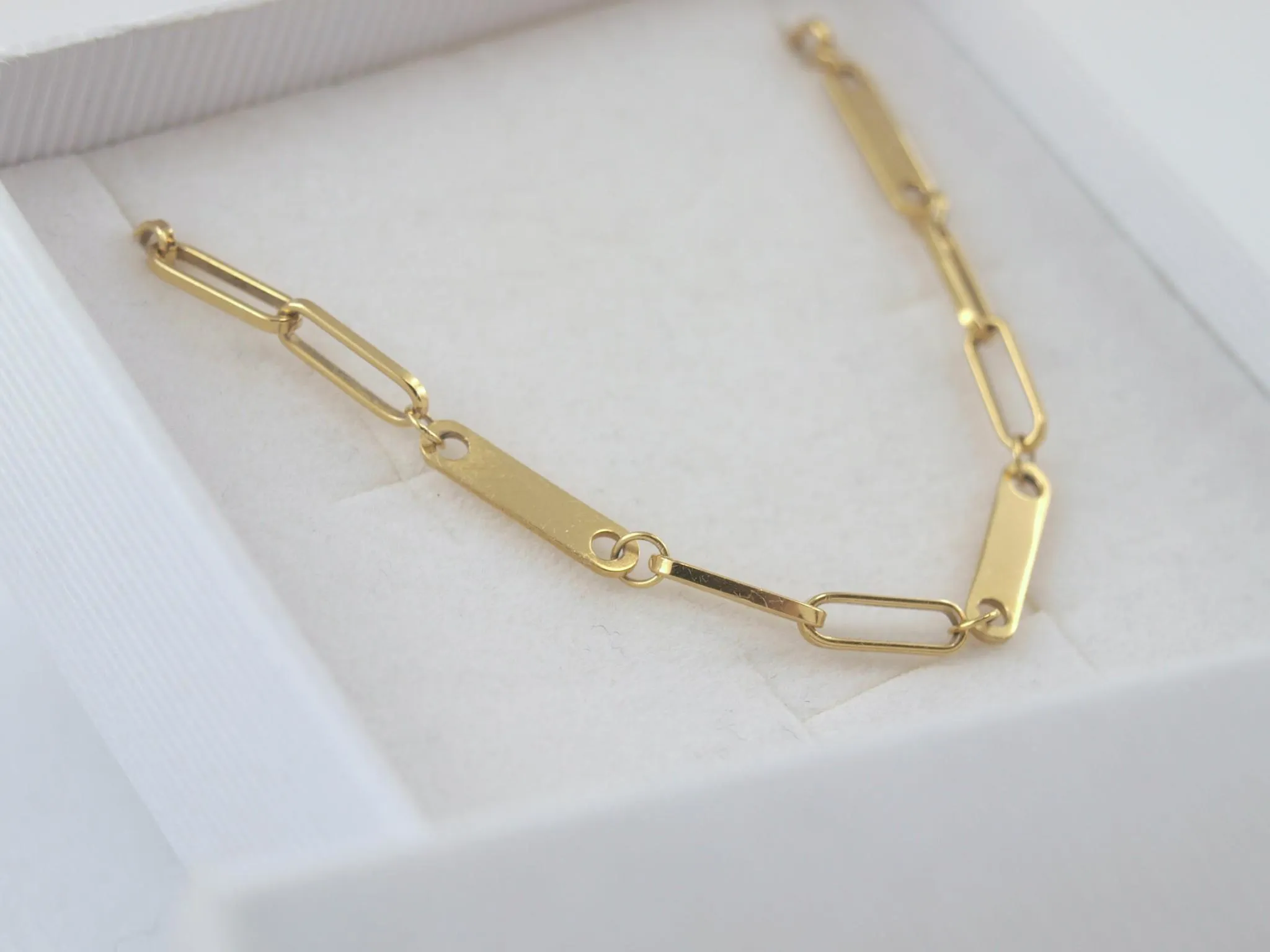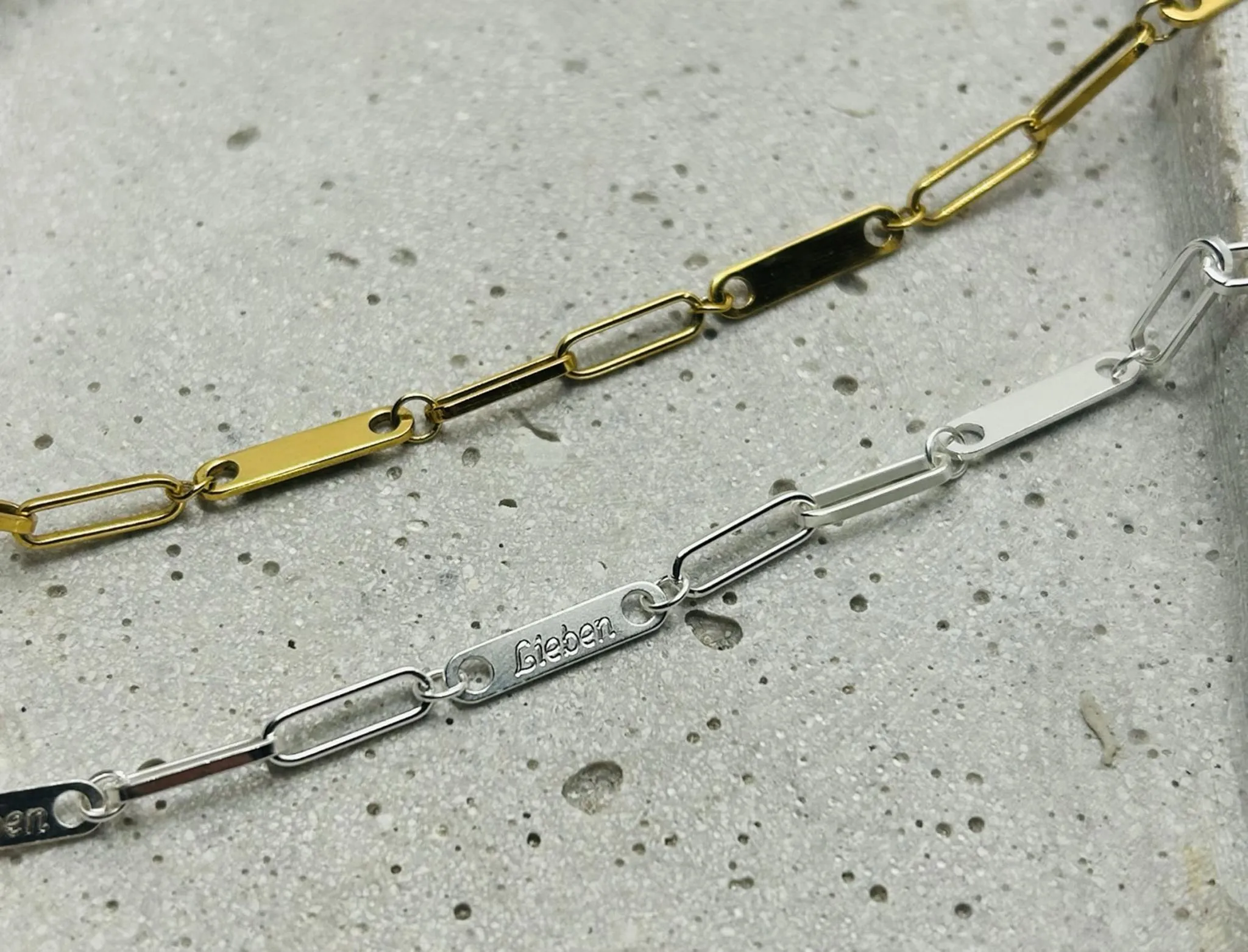 Moderne Gliederkette mit drei kleinen Plättchen mit Gravur-Option