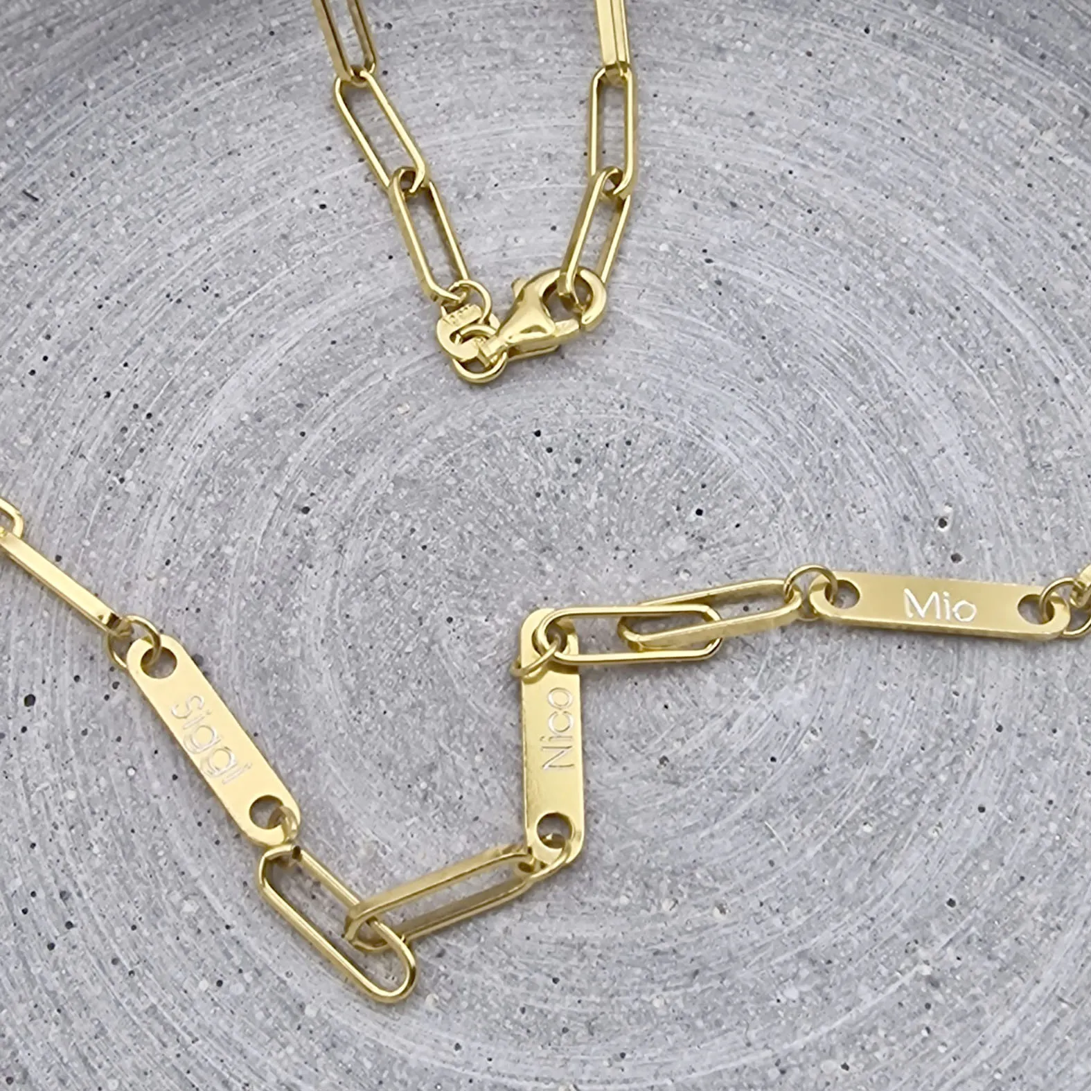 Produktinformation zur Gliederkette mit Gravur in Gold: