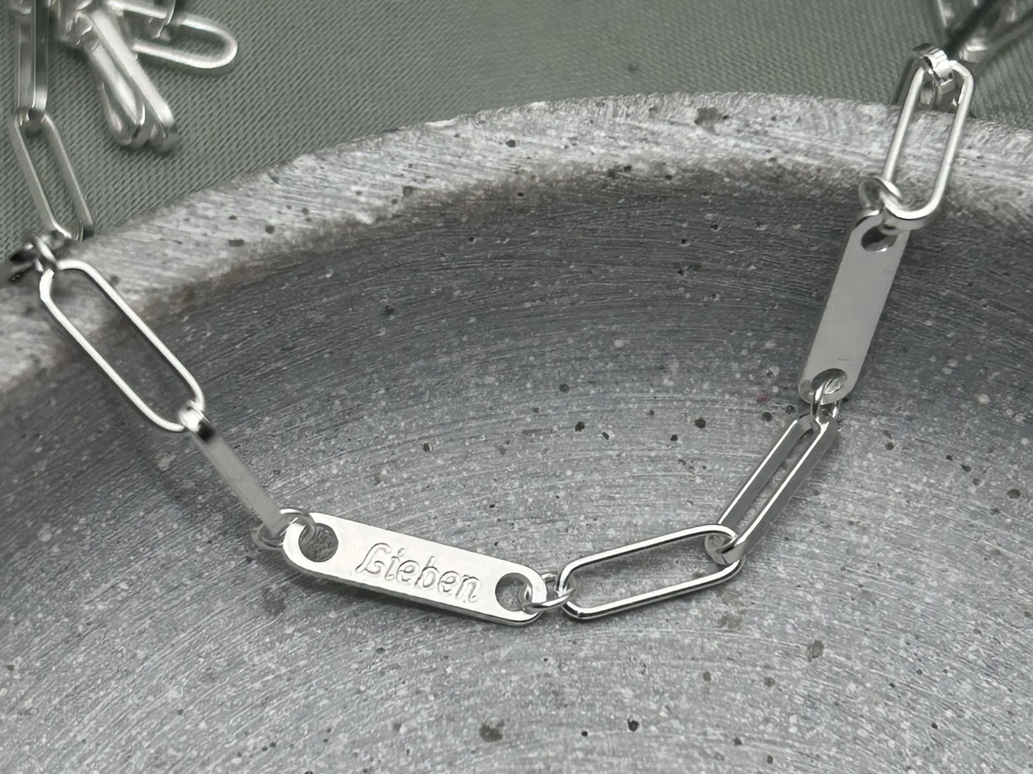 Moderne Gliederkette mit drei kleinen Plättchen mit Gravur-Option