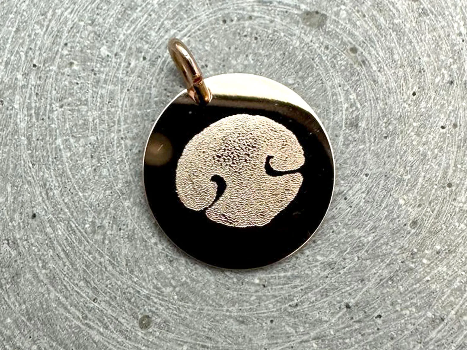 Wunderschöner, runder Gravuranhänger aus rosevergoldetem Silber mit Wunschgravur wählbar als Zubehör. Durchmesser ca. 16 mm. Individueller Anhänger für Ketten oder als Gravuranhänger für ein Armband aus unserem schöniglichen Sortiment.