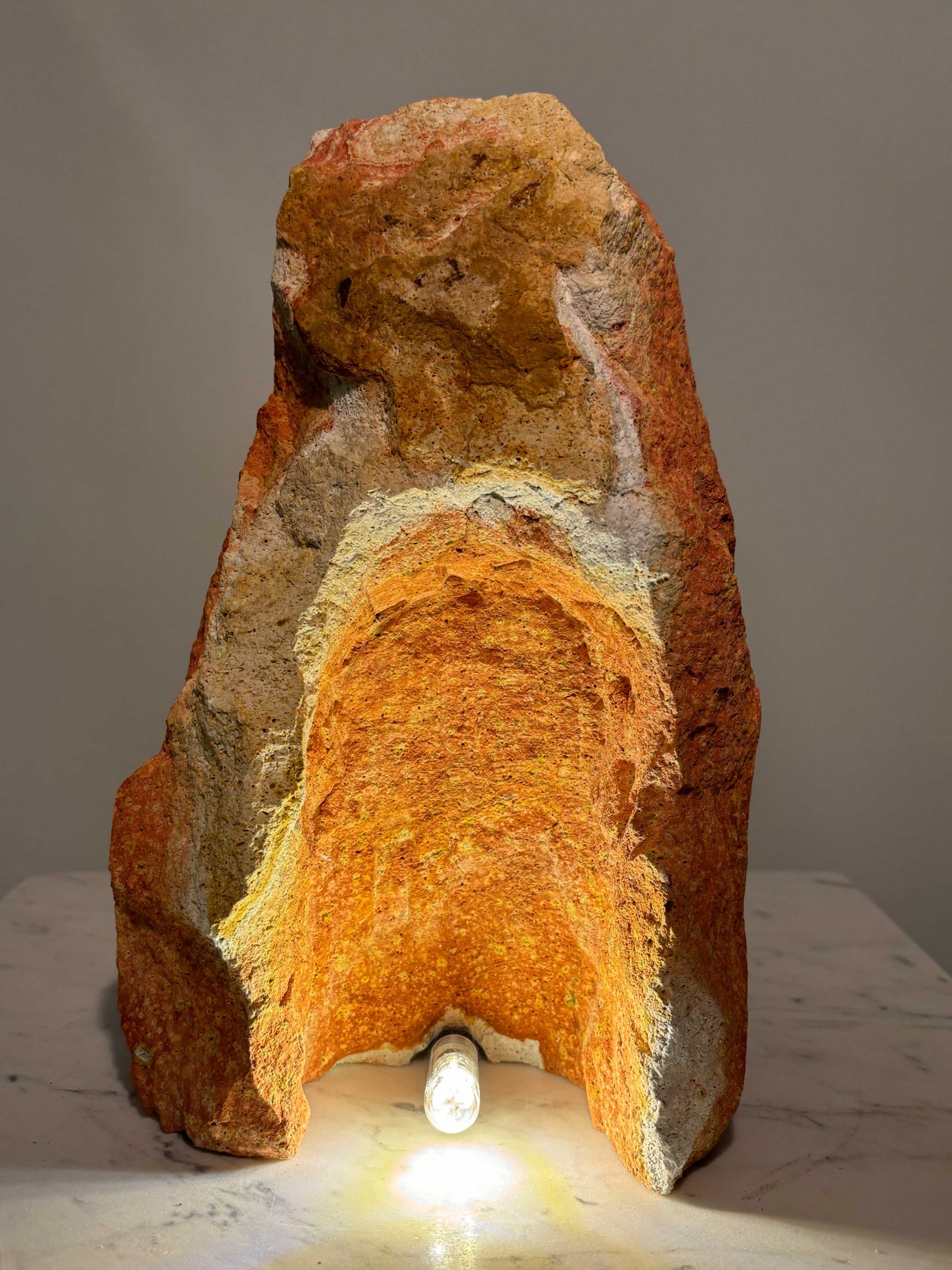 Eine ca. 27 cm hohe Grotte aus dem wunderschönen Material “Regenbogen Sandstein”.