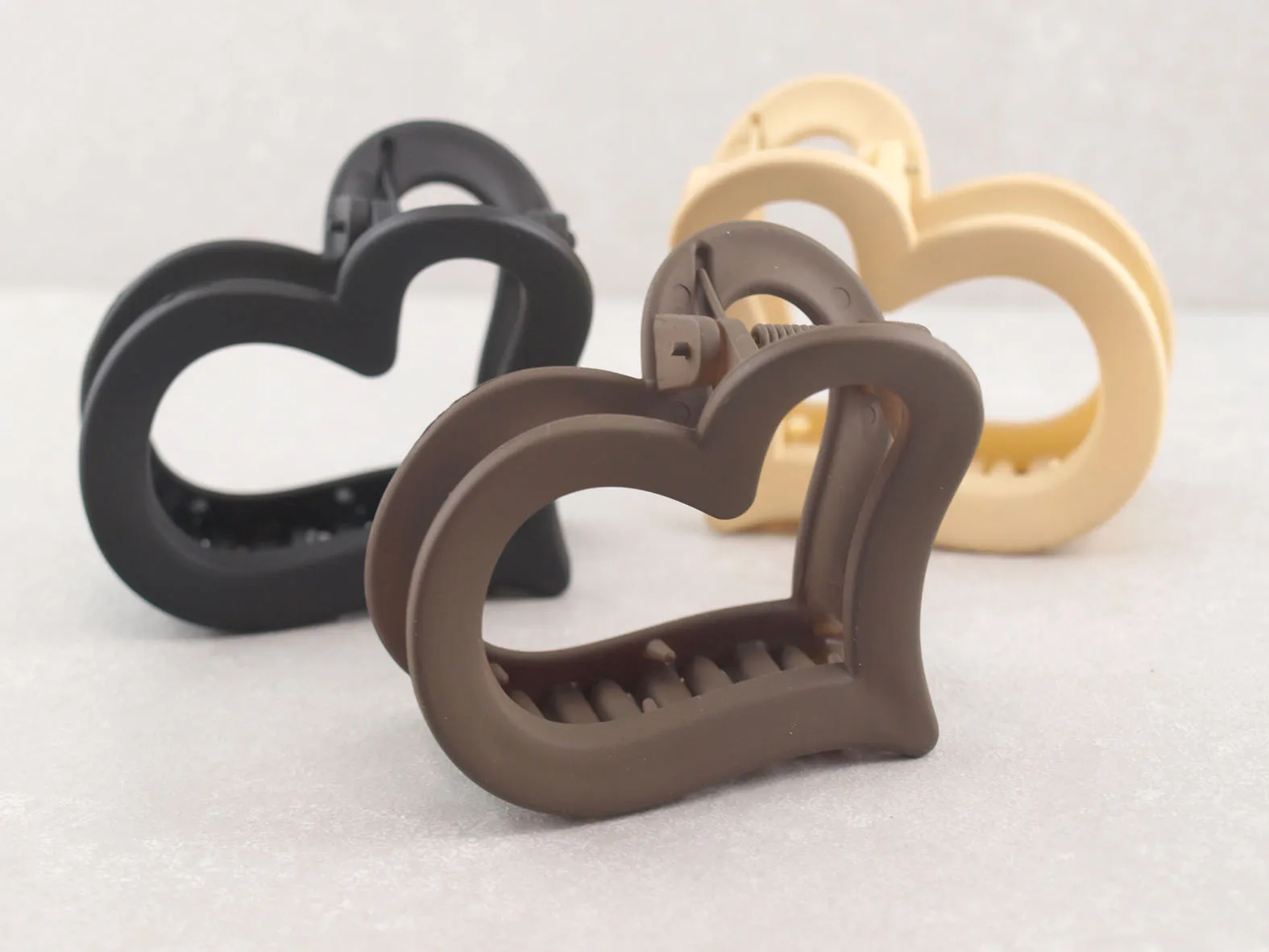 Diese wunderschöne Haarklammer hat die Form eines Herzens und eignet sich für verschiedene Frisuren. Sie wurde aus Kunststoff gefertigt und hat eine matte Oberfläche. Wählen Sie zwischen den Farben Schwarz, Taupe und Beige aus.