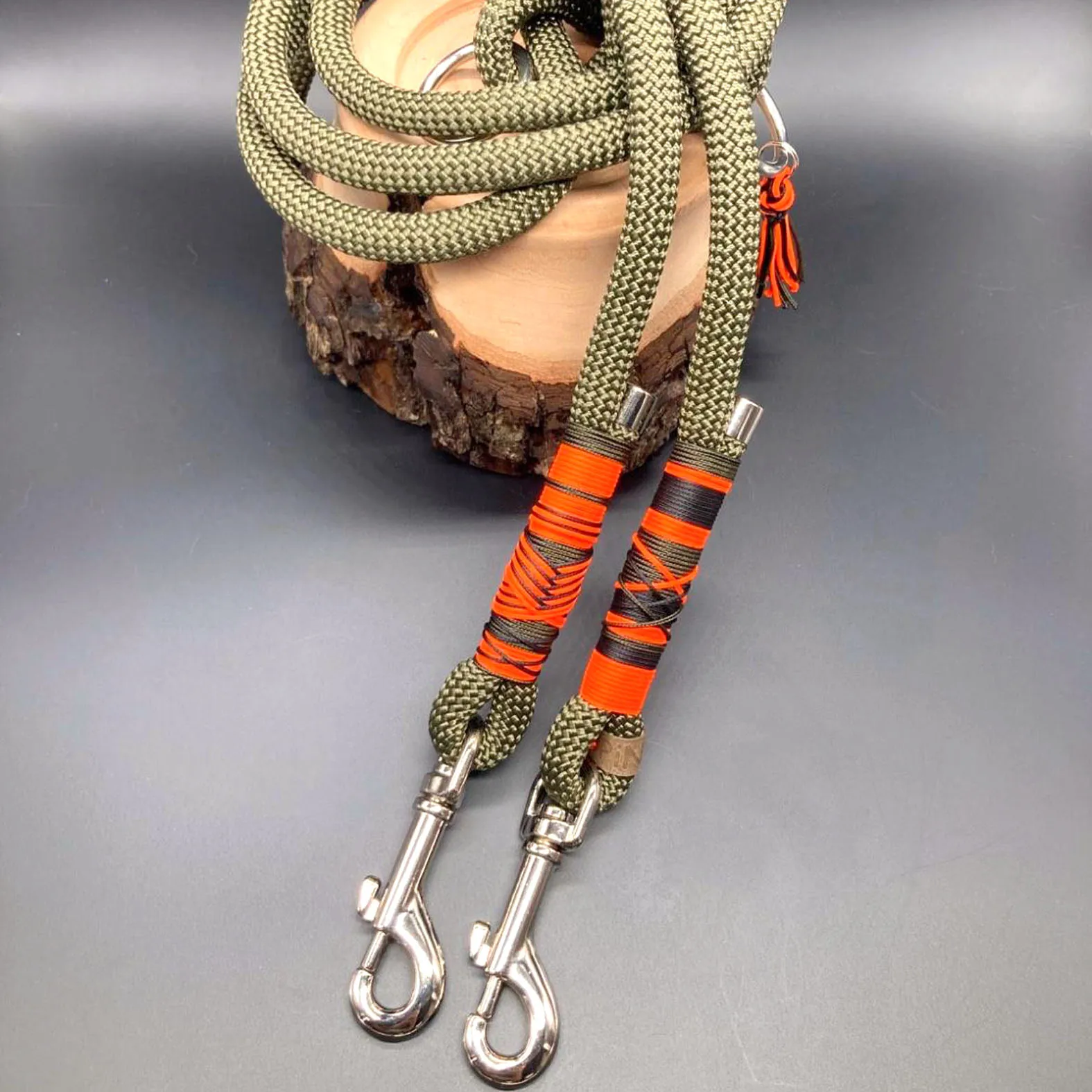 Diese besondere Hundeleine aus Segeltau wird von Hand in unserem Atelier gefertigt. Schöne, klassische Hundeleine mit fester Handschlaufe. Egal ob City, Feld oder Wald…mit diesem Modell seid ihr gut ausgestattet. Der Clou ist der kleine Ring in der Handschlaufe. Indem ihr den Karabiner dort einhakt könnt ihr Euch die Leine schnell und einfach umhängen, wenn euer Hund im Freilauf ist. So habt ihr die Hände frei und könnt euren gemeinsamen Spaziergang mit Eurem Liebling genießen.