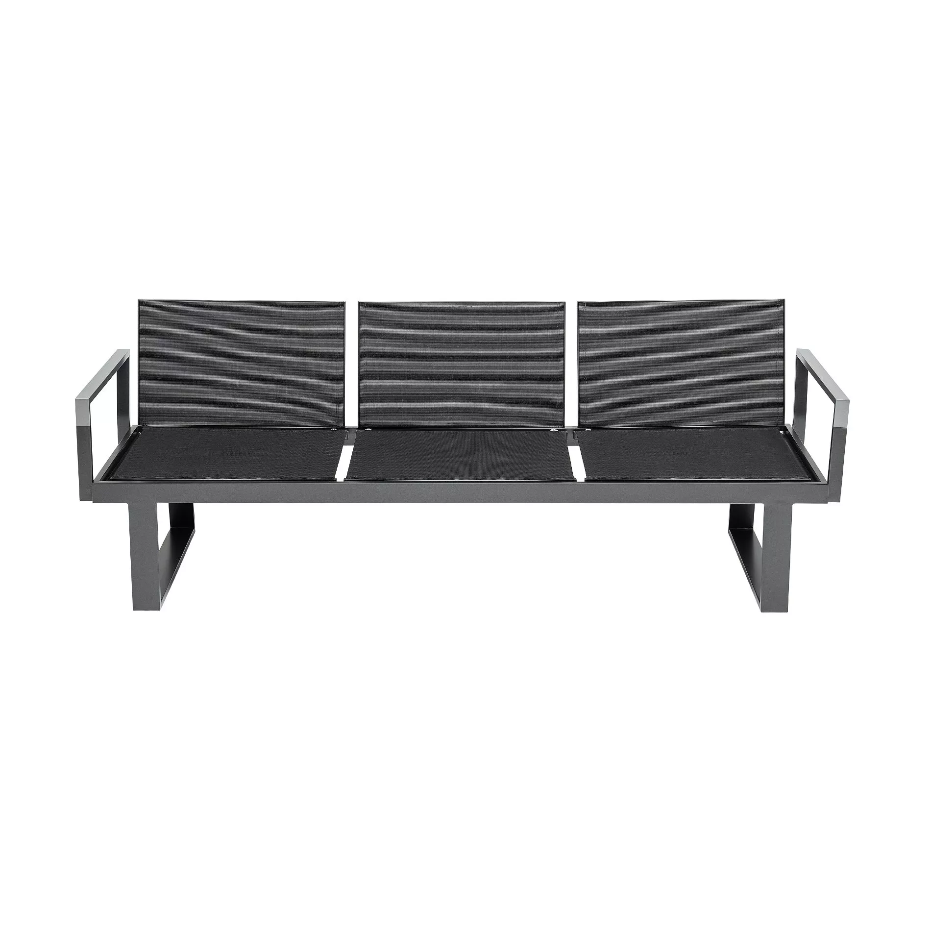 verfügt über ein hochwertiges Gestell aus Aluminium. Das Metall überzeugt durch Leichtigkeit, Stabilität und Robustheit. Gartenmöbel aus Aluminium sind super handlich und lassen sich ohne großen Kraftaufwand umstellen. Die rechte sowie die linke Sitzfläche der 3er-Bank ist mehrfach verstellbar. Selbst bei Nutzung der optionalen Armlehnen bleiben die Sitzflächen verstellbar.