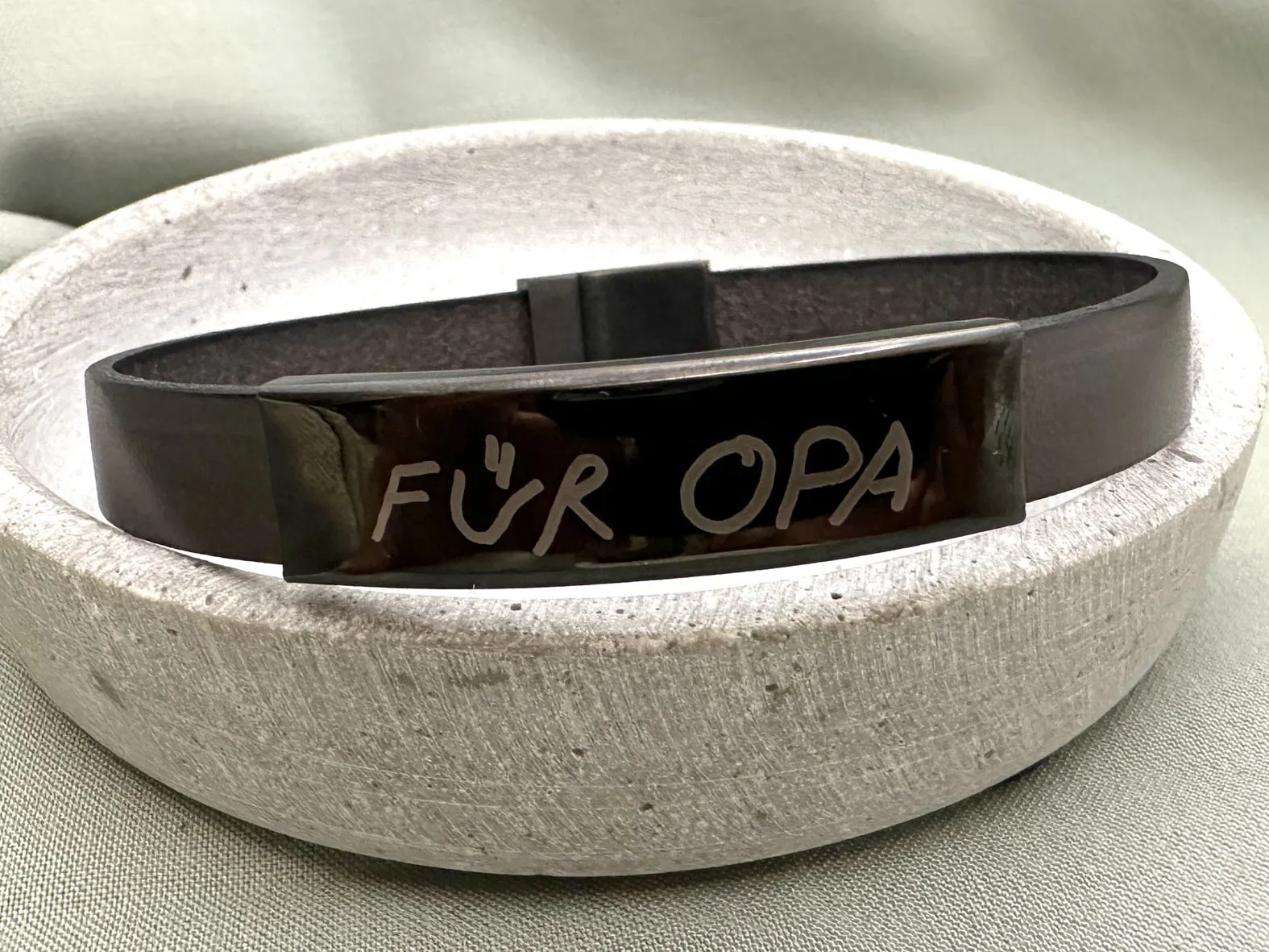 Das Lederarmband mit gravierbarem Schild ist das ideale Geschenk für den Partner – eine elegante und persönliche Geste, die verbindet.