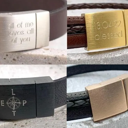Personalisierbares Lederarmband Herren mit Gravur auf dem Verschluss und Wunschtext