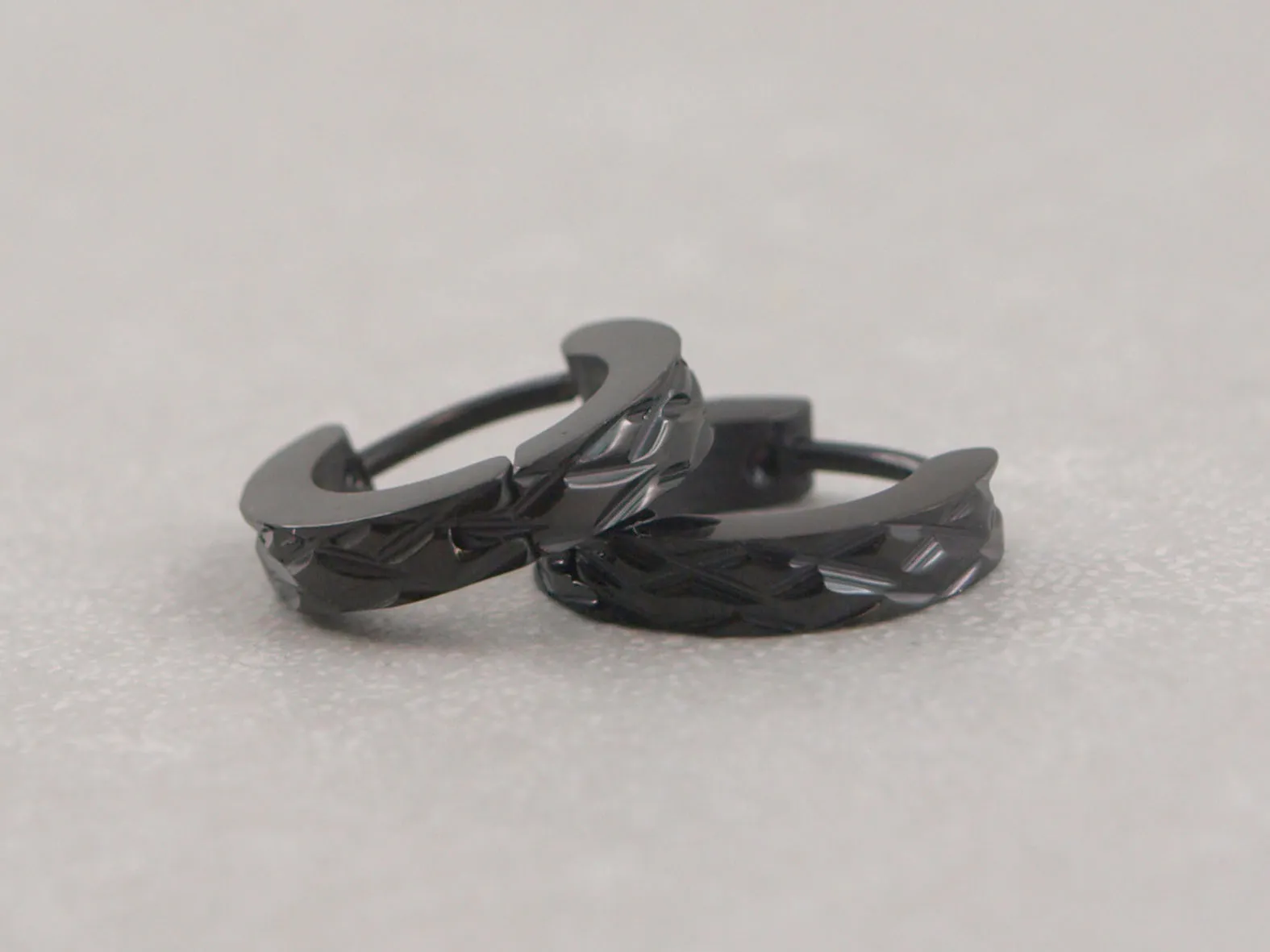 Schwarze Creolen für Männer mit Muster aus Chirurgenstahl, Männer Ohrring