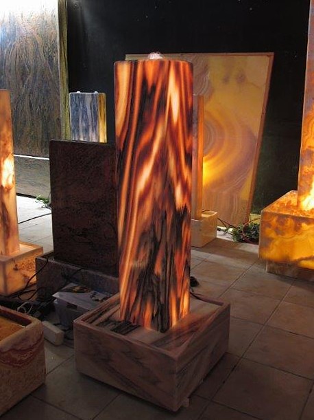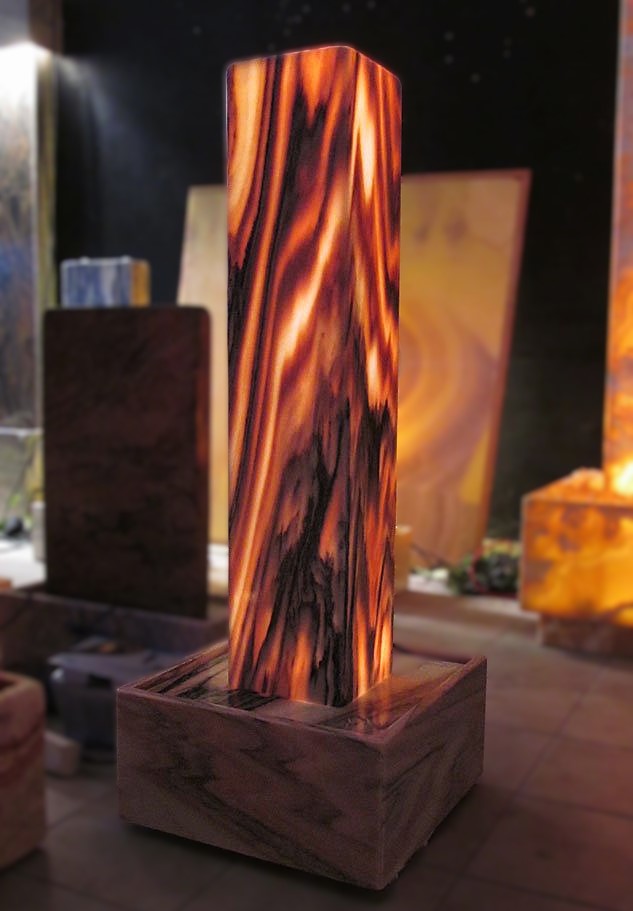 Der österreichische Marmor mit seinen warmen Farbtönen verbreitet eine angenehme Stimmung in Ihrem Wohnraum. Der ausgeleuchtete Hohlkörper wird durch eine Steigleitung gleichmäßig mit Wasser überflutet.