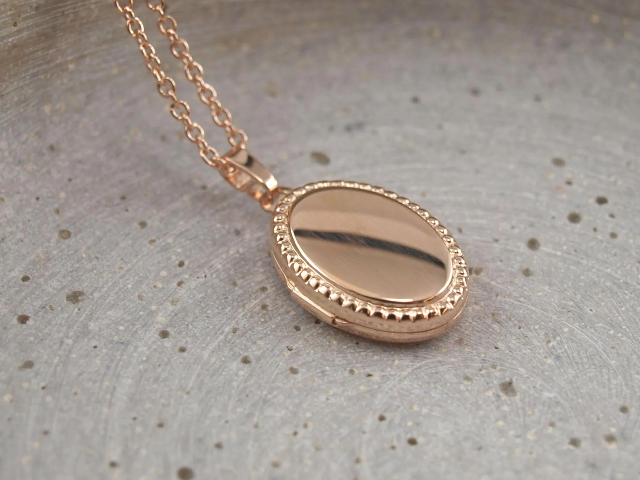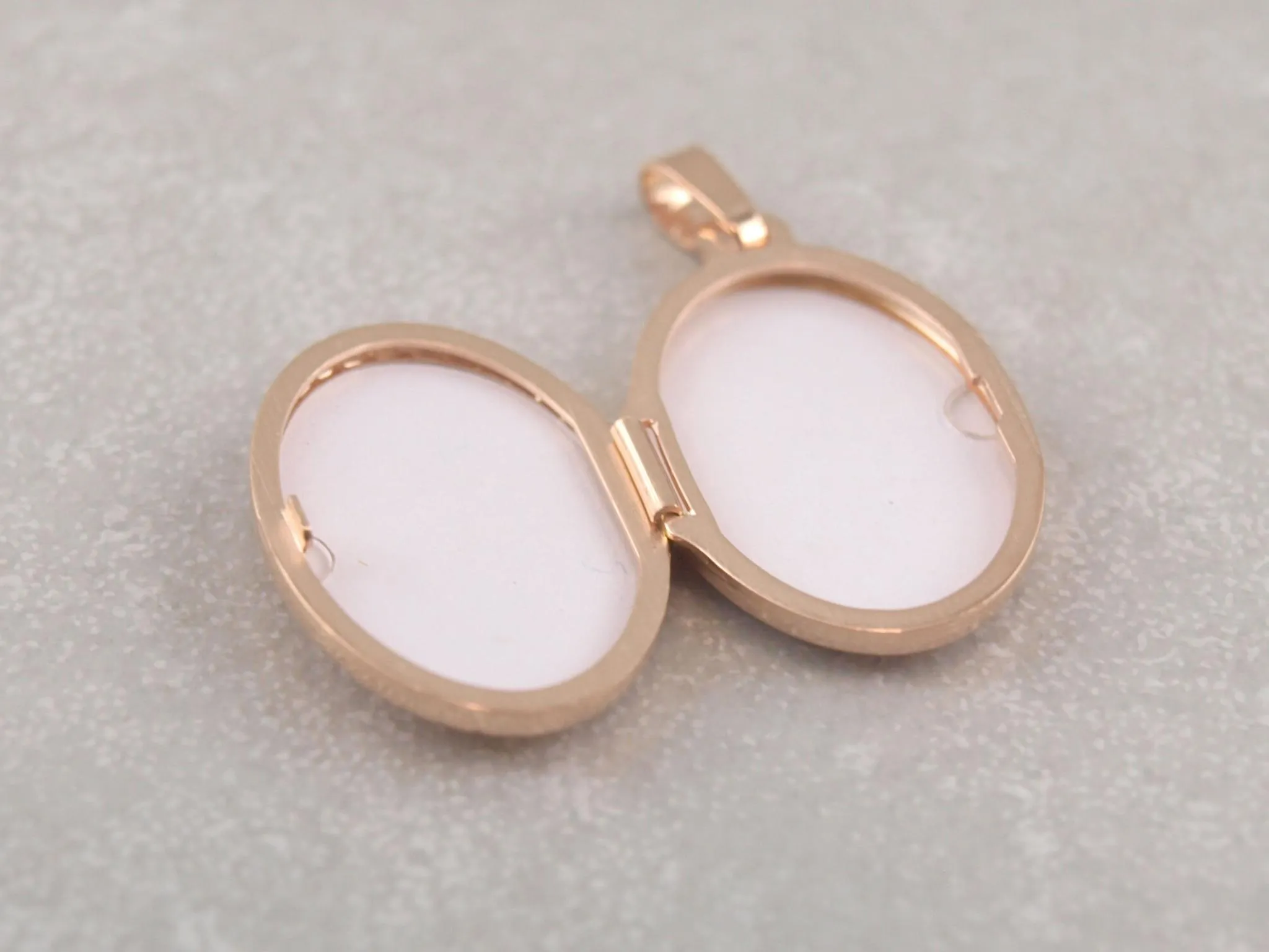 Ovales Medaillon aus rosévergoldetem Silber für zwei Fotos, Gravur-Option