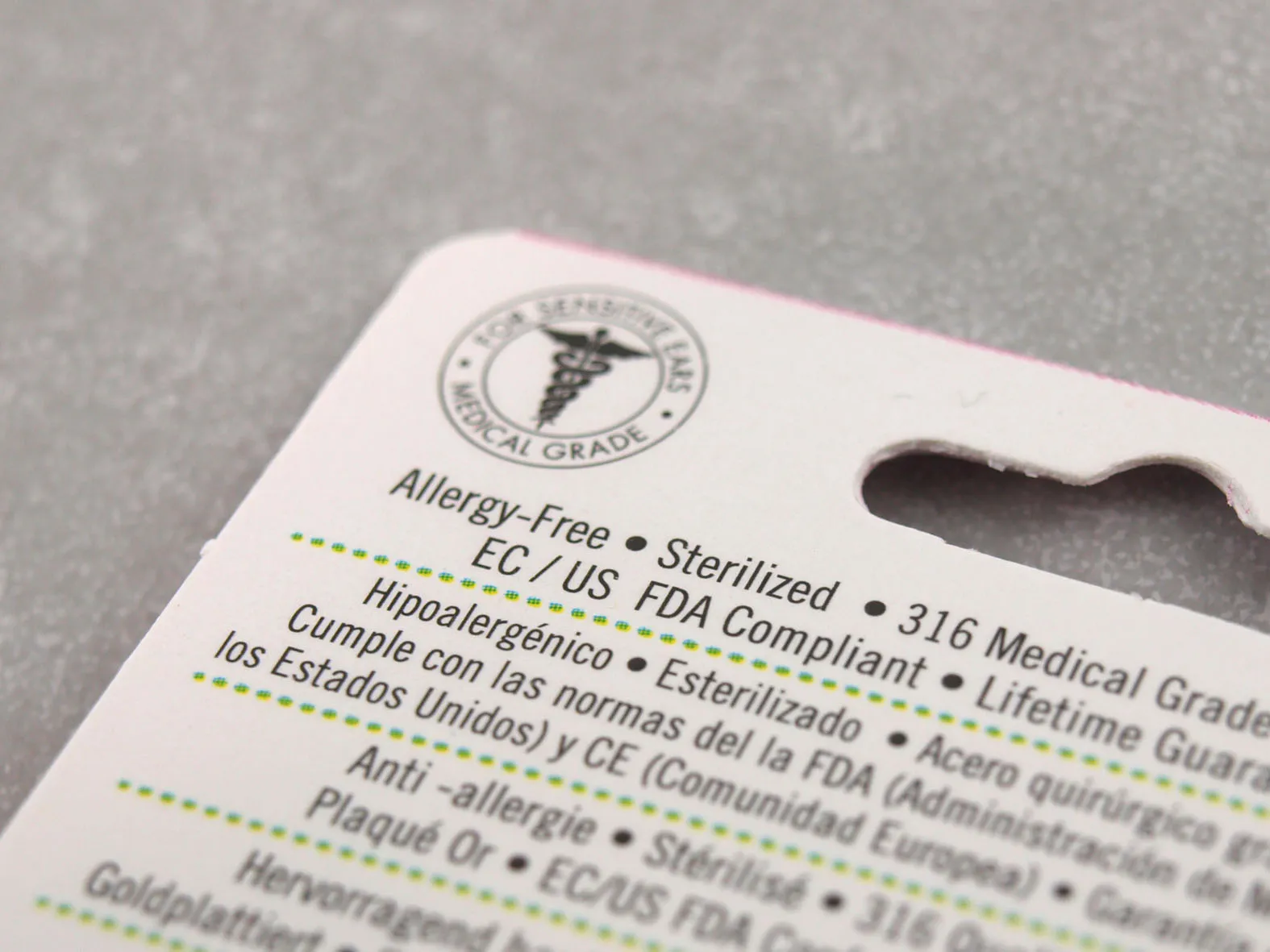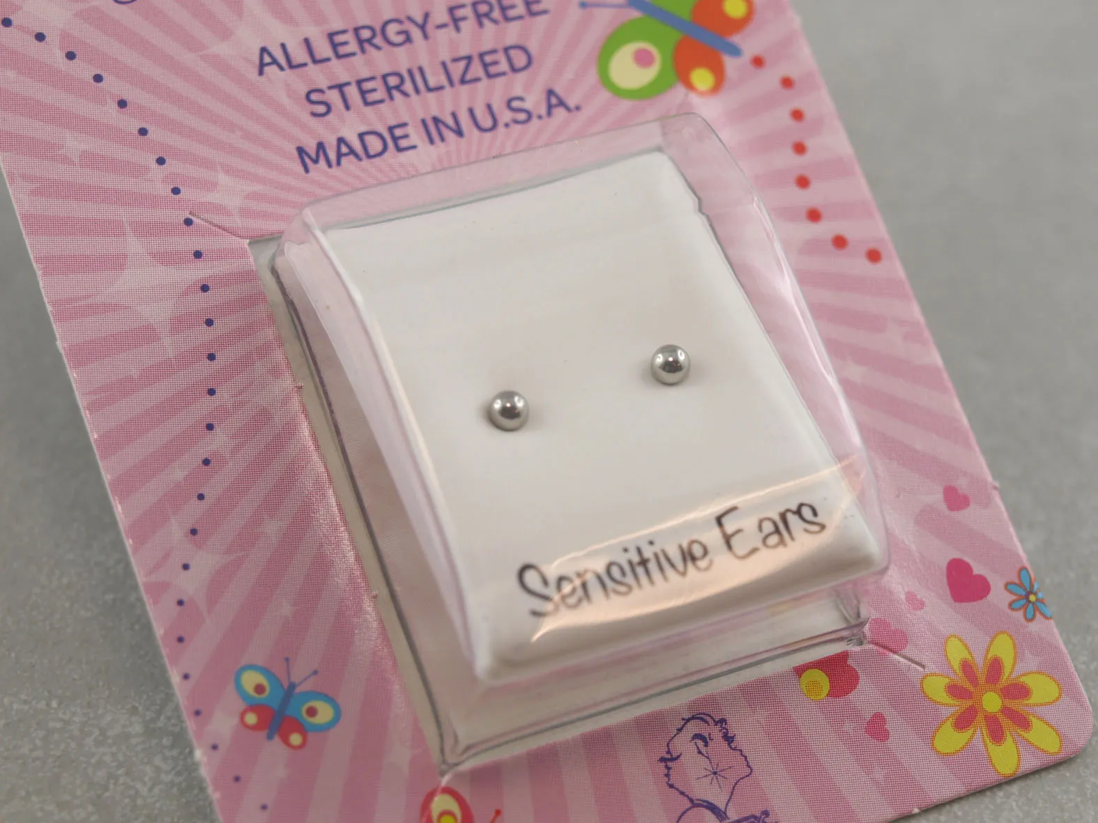 Diese medizinischen Ohrringe für Kinder sind aus hypoallergenem Chirurgenstahl und unter sterilen Bedingungen verpackt worden.
