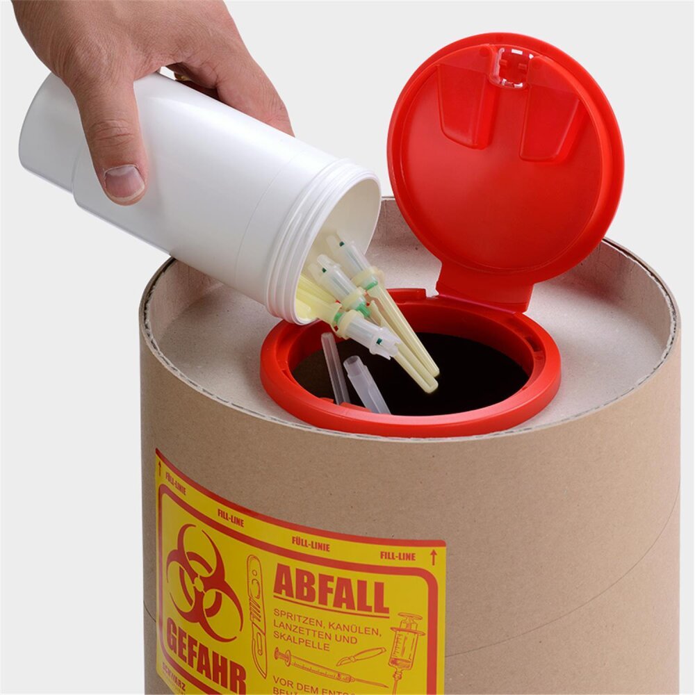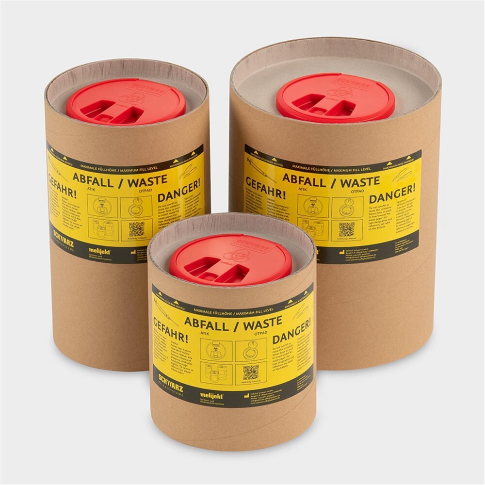 mit Klappdeckel Plombe und Warnaufkleber aus Recycling-Pappe Maße: 170 mm x H 280 mm hoch