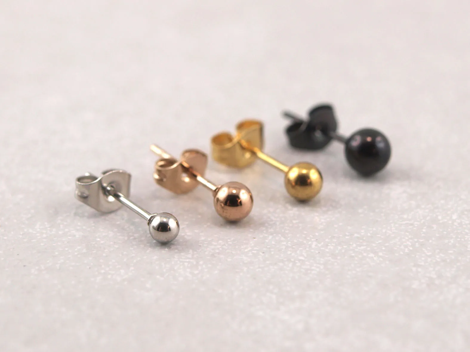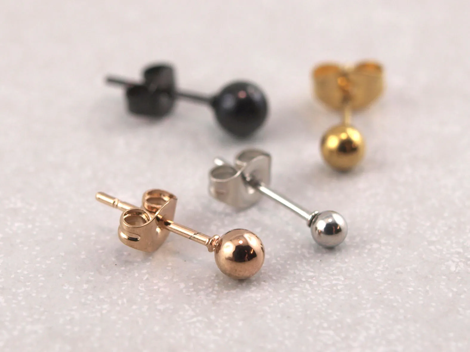 Hautverträgliche, hypoallergene Kugel Ohrstecker aus Chirurgenstahl in Gold, Silber, Roségold oder Schwarz. Dieser klassische Kugel-Ohrring aus Chirurgenstahl ist in verschiedenen Größen erhältlich. Er ist für Allergiker geeignet und kann bedenkenlos getragen werden! Chirurgenstahl ist ein beliebtes Material für hypoallergene Ohrstecker.