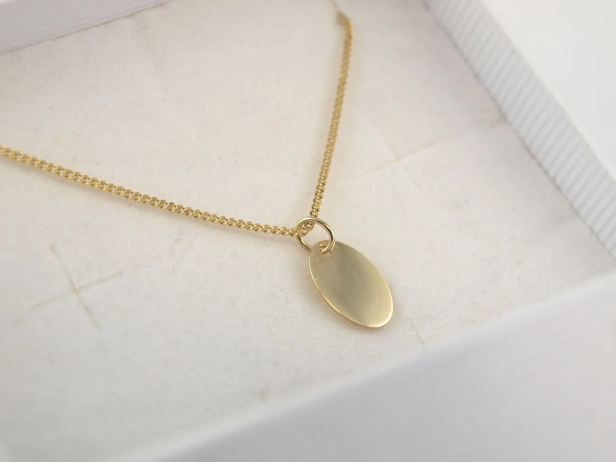 Dieser glänzende, ovale Anhänger aus echtem 333er Gold ist circa 8×12 mm groß. Auf dem goldenen Anhänger gravieren wir gerne Ihre Wünsche! Ob ein Symbol, einen Namen oder die Initialen Ihrer Lieblingsmenschen. Den Anhänger können Sie beispielsweise an einer schönen Ankerkette tragen oder ihn an einem unserer filigranen schöniglichen Armbänder befestigen lassen! Ein Fingerabdruck oder einen Pfotenabdruck macht diesen Anhänger in Gold zu einem sehr besonderen Erinnerungsschmuck.