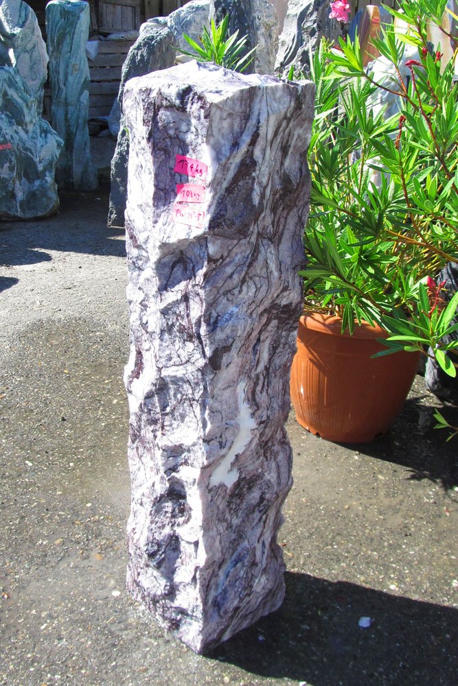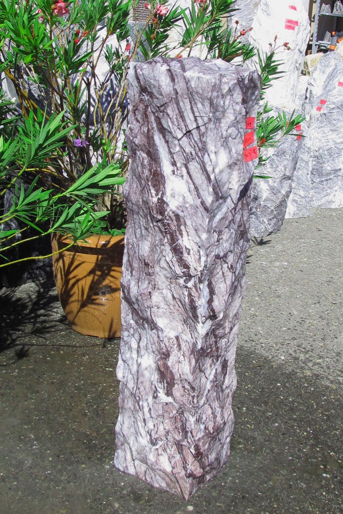 Wunderschön geschlagene Stelen aus Massivstein. Dieser toll gefärbter und gezeichnete lila Marmor aus der Türkei fügt sich wunderbar in jedes Garten-Ambiente ein. Das Material ist 100%ig frostsicher.