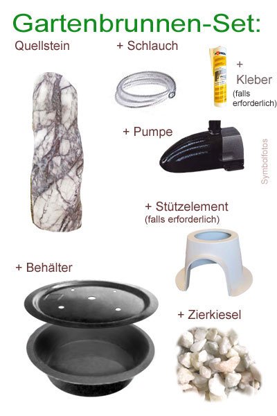 Sie können diesen Quellstein auch einfach als Gartenbrunnen Komplettset zum Preis von € 629,– bestellen. (Wählen Sie hierzu einfach oben die Option im dropdown Menü)