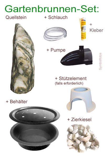 Sie können diesen Quellstein auch einfach als Gartenbrunnen Komplettset zum derzeit gültigen Aktions-Preis von nur noch € 368,– (statt € 418,–) bestellen. (Wählen Sie hierzu einfach oben die Option im dropdown Menü)
