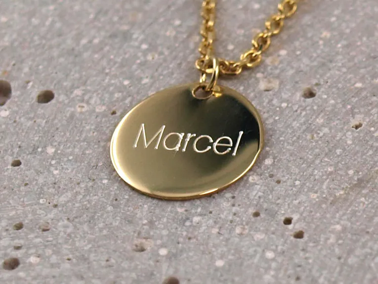 Runder Gravuranhänger mit Wunschgravur wählbar für eine Kette oder ein Armband, vergoldet